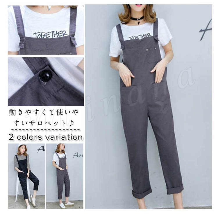 レディース オールインワン ロンパース ワイドパンツ サロペット スカーチョ テーパード ガウチョパンツ オーバーオール ゆったり 4サイズ S M