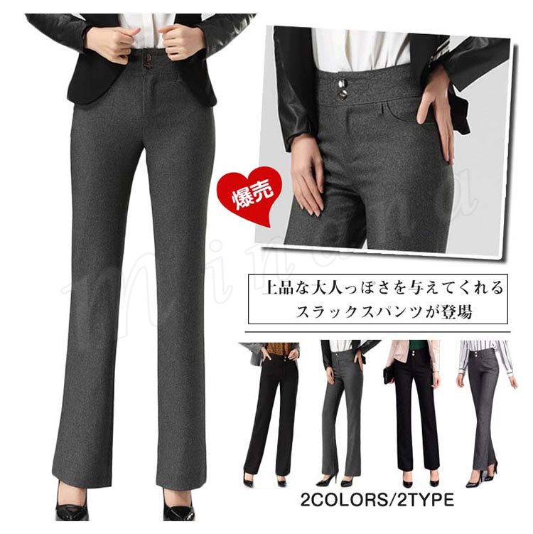 レディーススーツパンツ スラックス ロングパンツ ハイウエスト ビジネススーツパンツ 大きいサイズ ストレートパンツ オフィス 通勤 OL