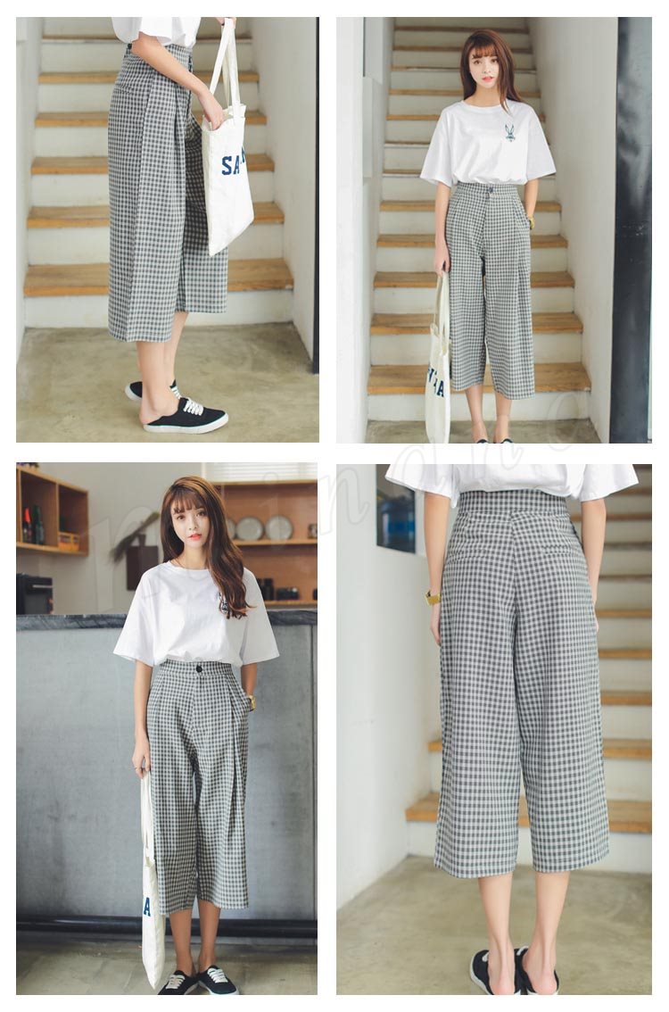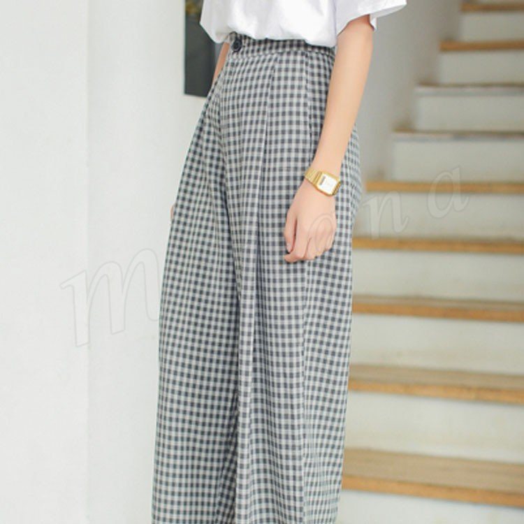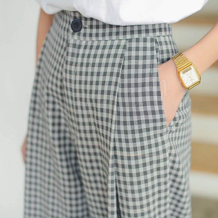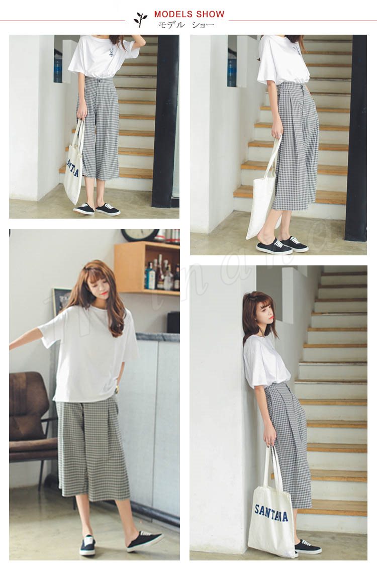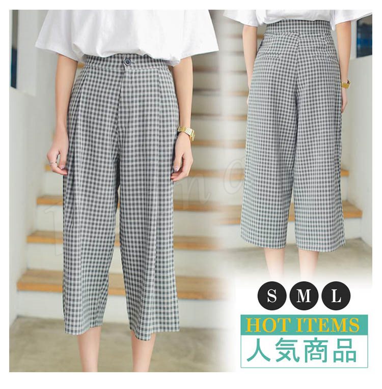 7分丈 ワイドパンツ チェック柄 ガウチョパンツ ロング丈 フレア ワイドパンツ キュロットパンツ フレアパンツ リラックス 美脚 美尻