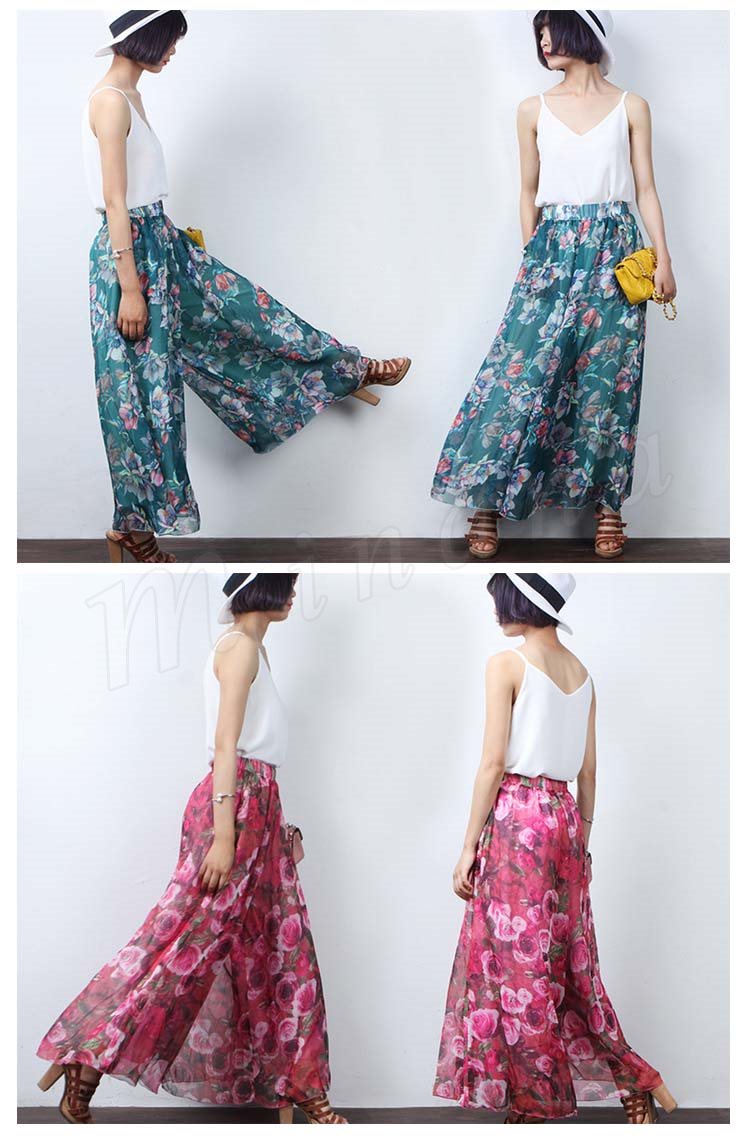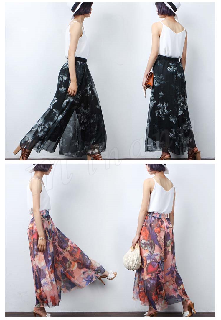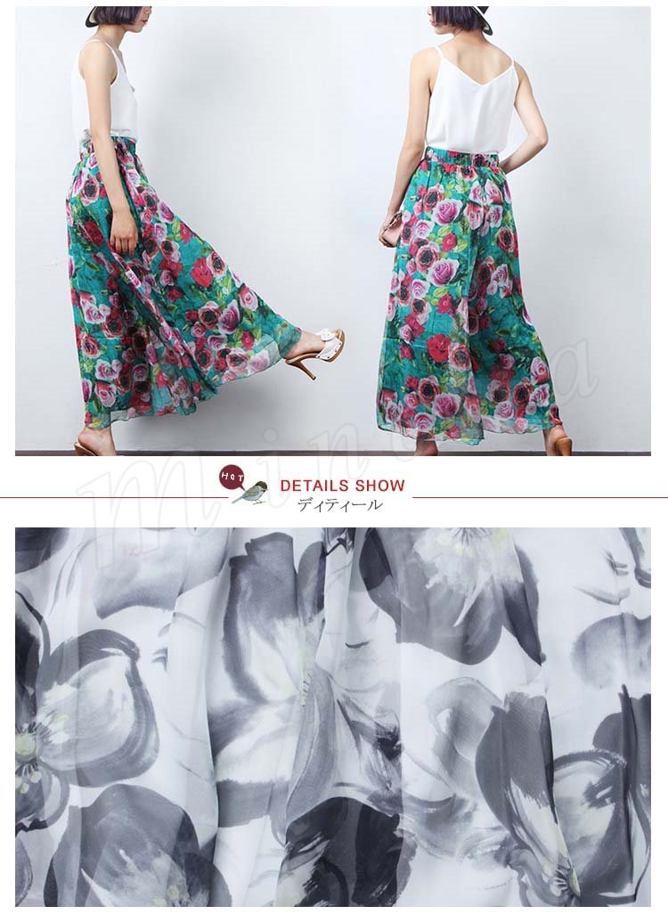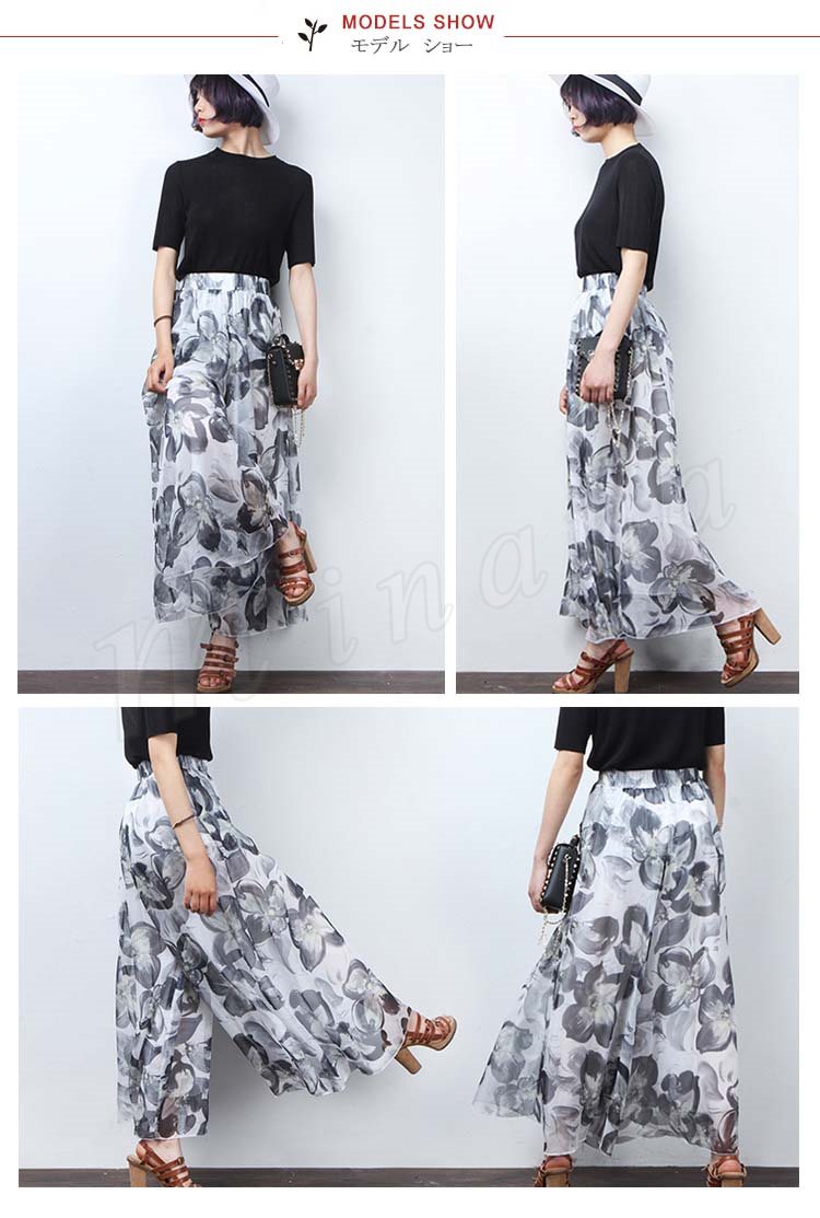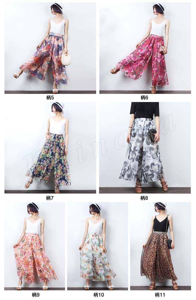 シフォン ガウチョパンツ フレア パンツ ワイドパンツ スカート風 キュロットパンツ 美脚 ボトムス 女性 春夏 レディース