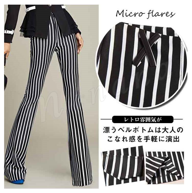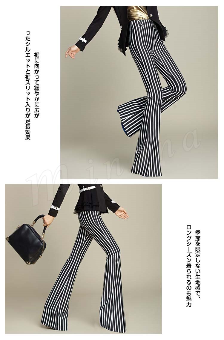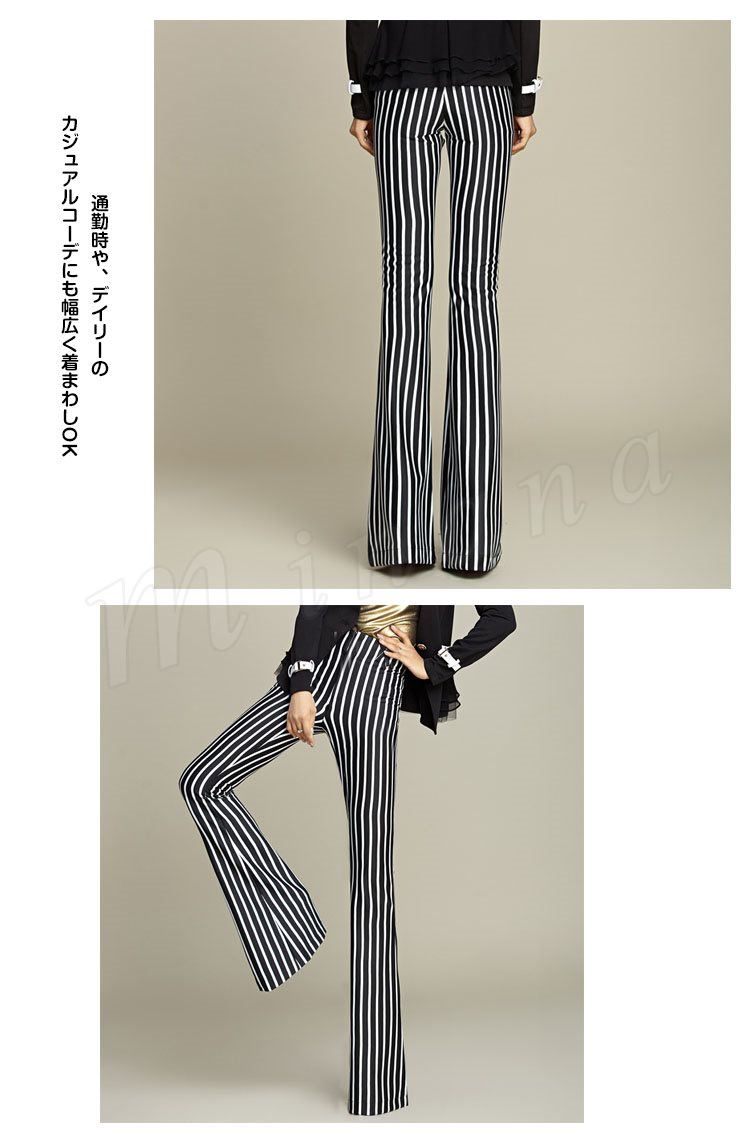 パンタロン ベルボトム ストライプ柄 レディース ラッパズボン ロングパンツ ハイウエスト ストレッチ 春夏 通勤 オフィス OL カジュアル