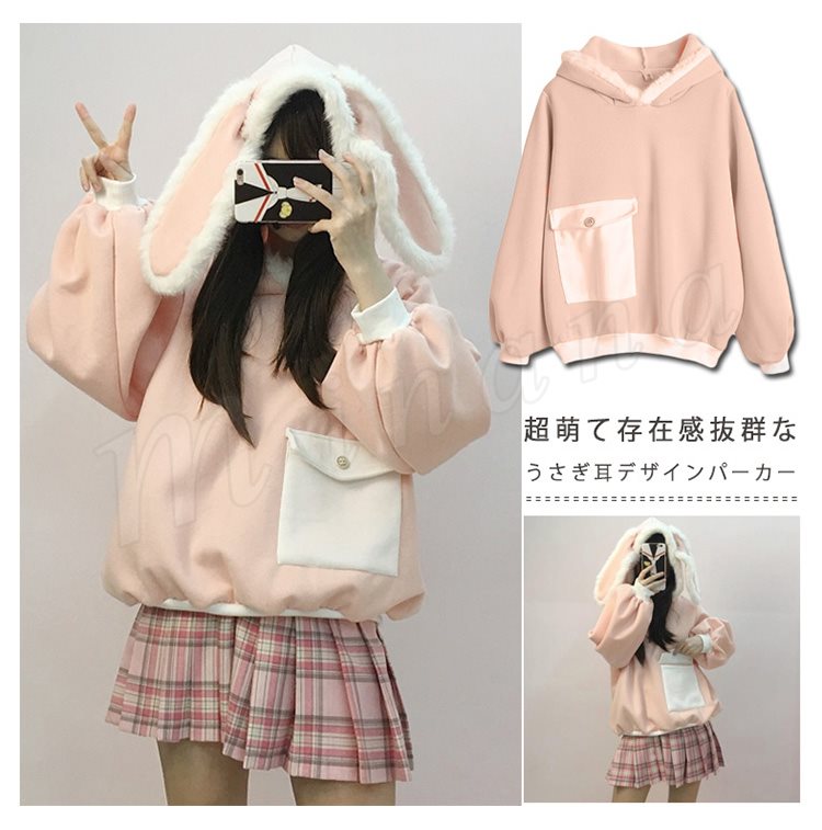 超萌て存在感抜群なうさぎ耳デザインパーカー。