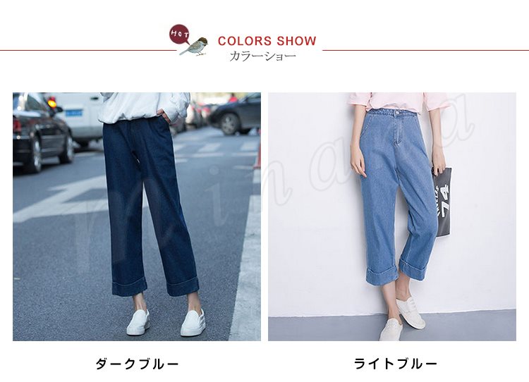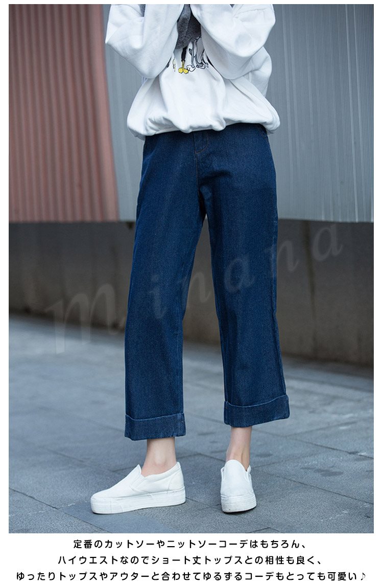 ガウチョ デニム デニムガウチョ ガウチョパンツ ワイドパンツ コットン 綿 ワイド パンツ ミモレ丈 ストレート ボトムス 7分丈 9分 Z