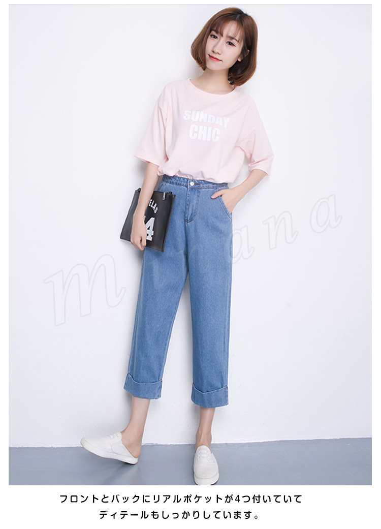 ハイウエストなのでショート丈トップスとの相性も良く、