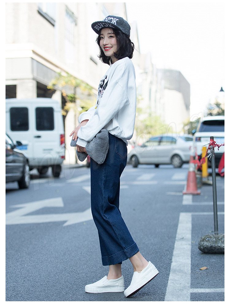 踝が見える丈感なので、もたつかずスッキリ見せてくれる長さです。