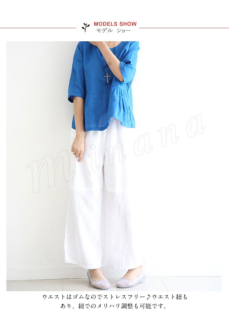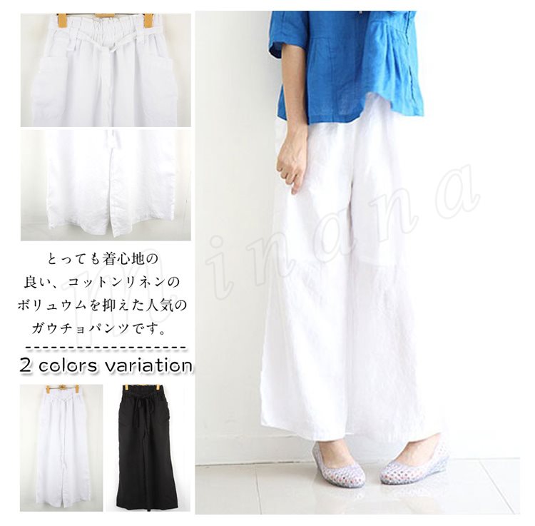 レディース 森ガール ボトムス ガウチョパンツ ワイドパンツ ロングパンツ ガウチョ ナチュラル 9分丈 サルエル ウエストゴム2カラー フリーサイズ