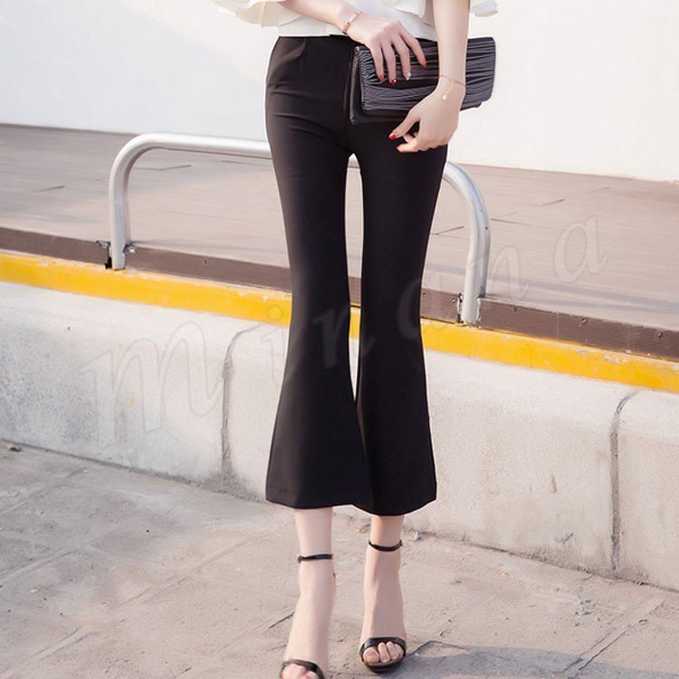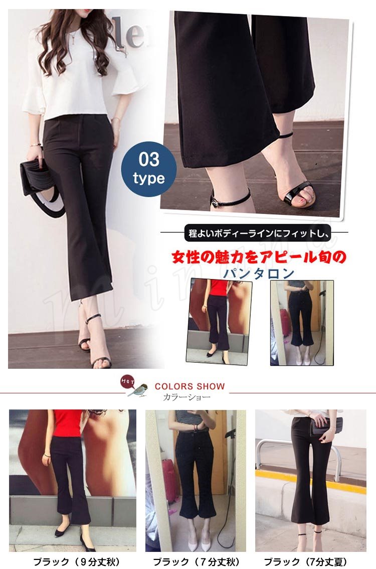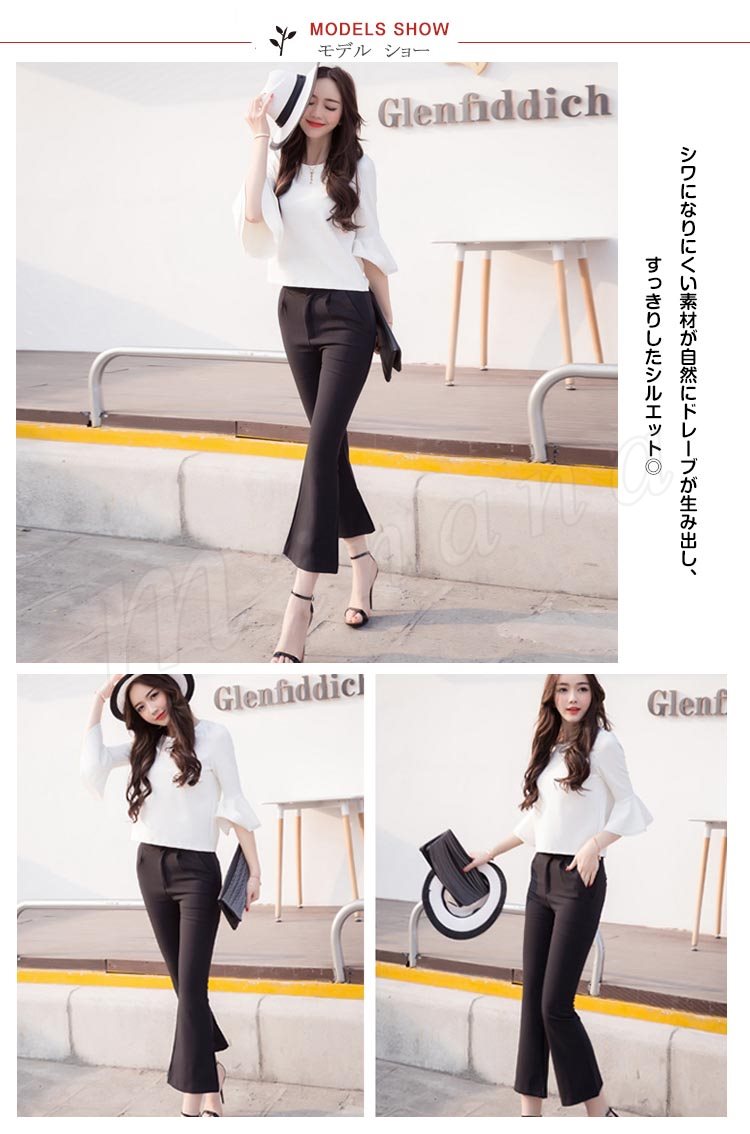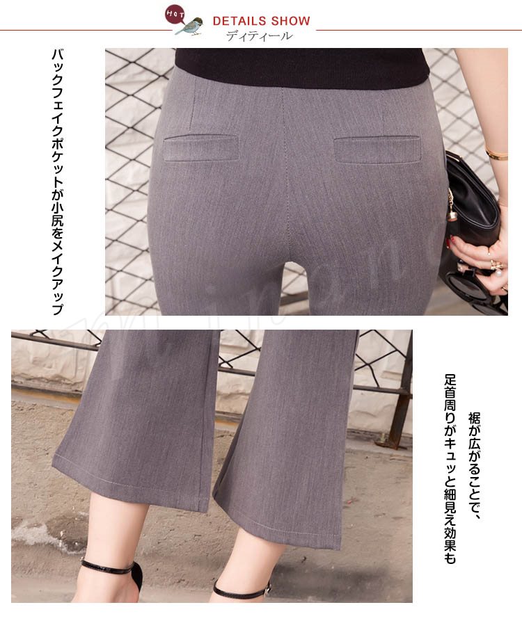 スキニー 7分丈 パンタロン 9分丈 クロップドパンツ ワイドパンツ 裾フレア レディース スリム ストレッチ シワになりにくい ハイウエスト 体型カ