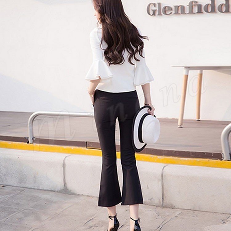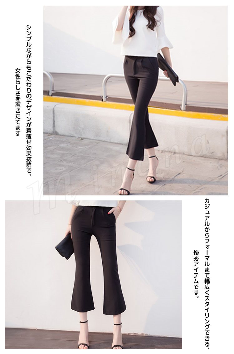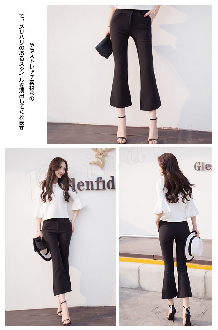 スキニー 7分丈 パンタロン 9分丈 クロップドパンツ ワイドパンツ 裾フレア レディース スリム ストレッチ シワになりにくい ハイウエスト