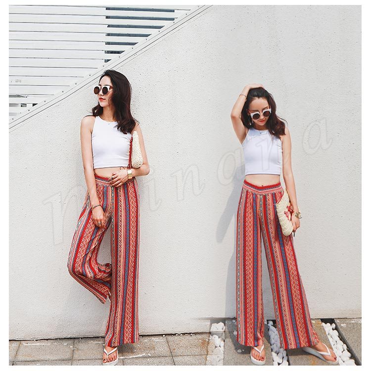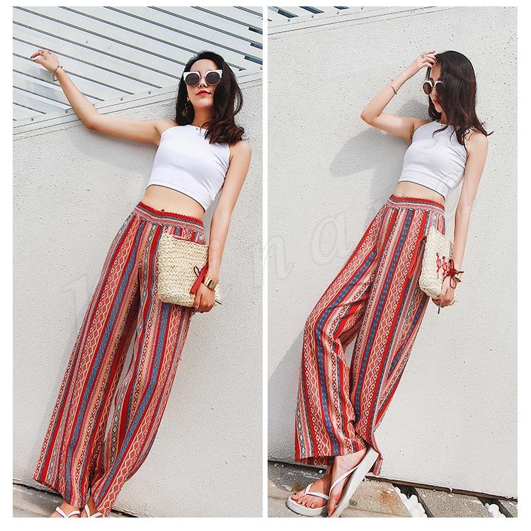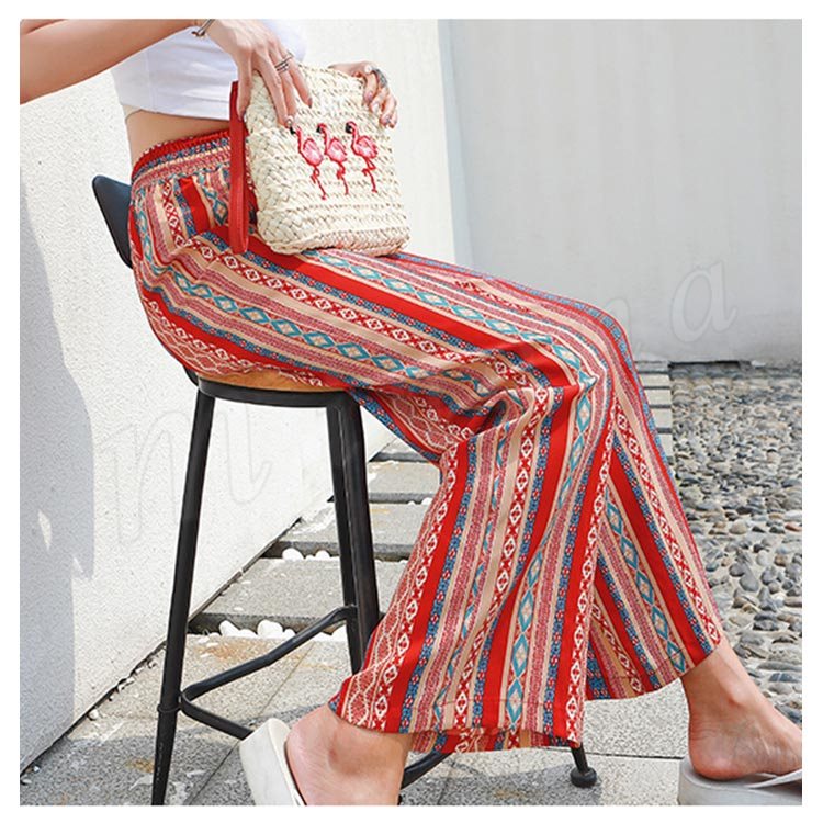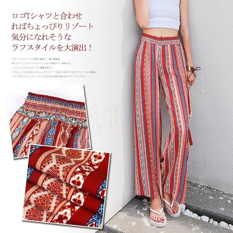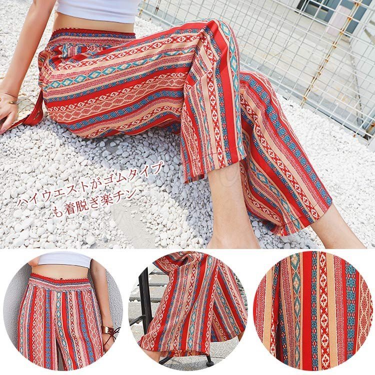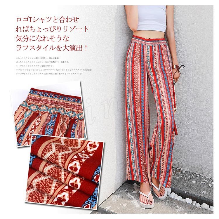 プリントワイドパンツ ワイドパンツ ガウチョパンツ レディース ワイド ロングパンツ 総柄 プリント リゾートパンツ カジュアル ウエストゴム