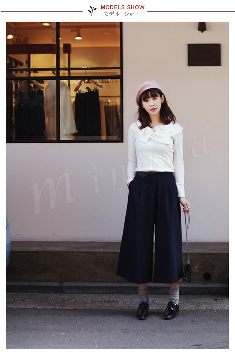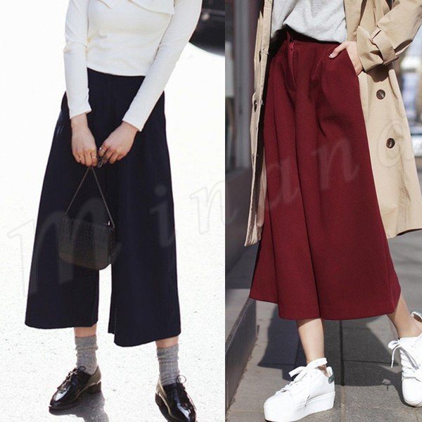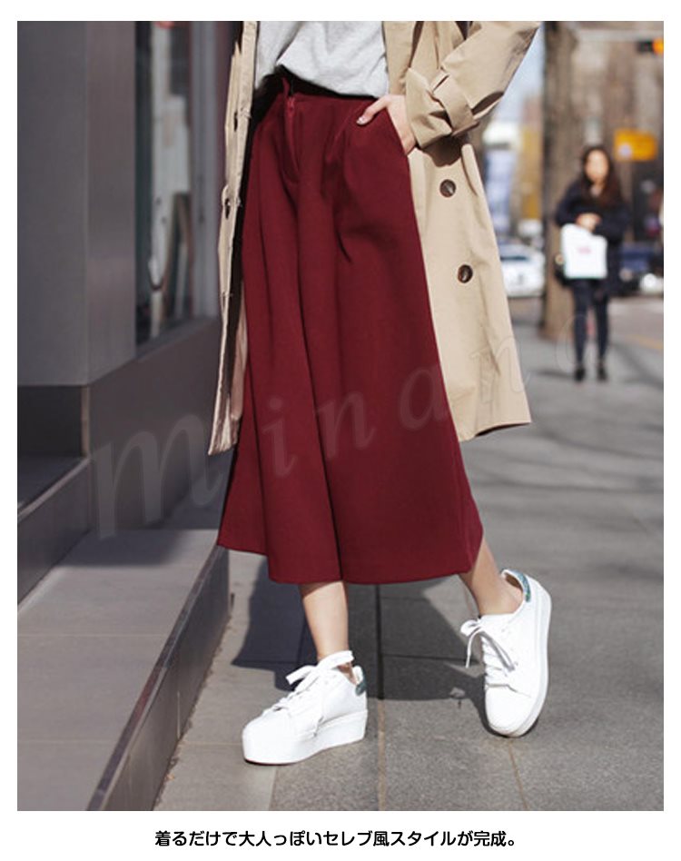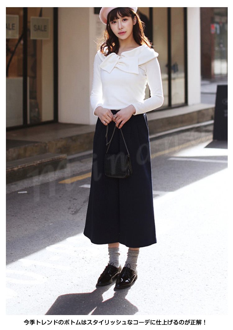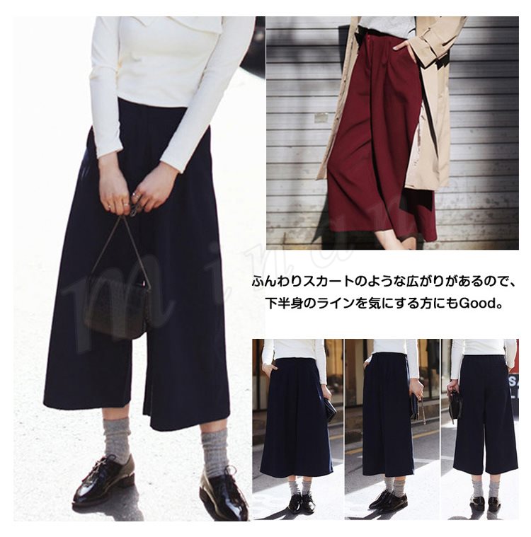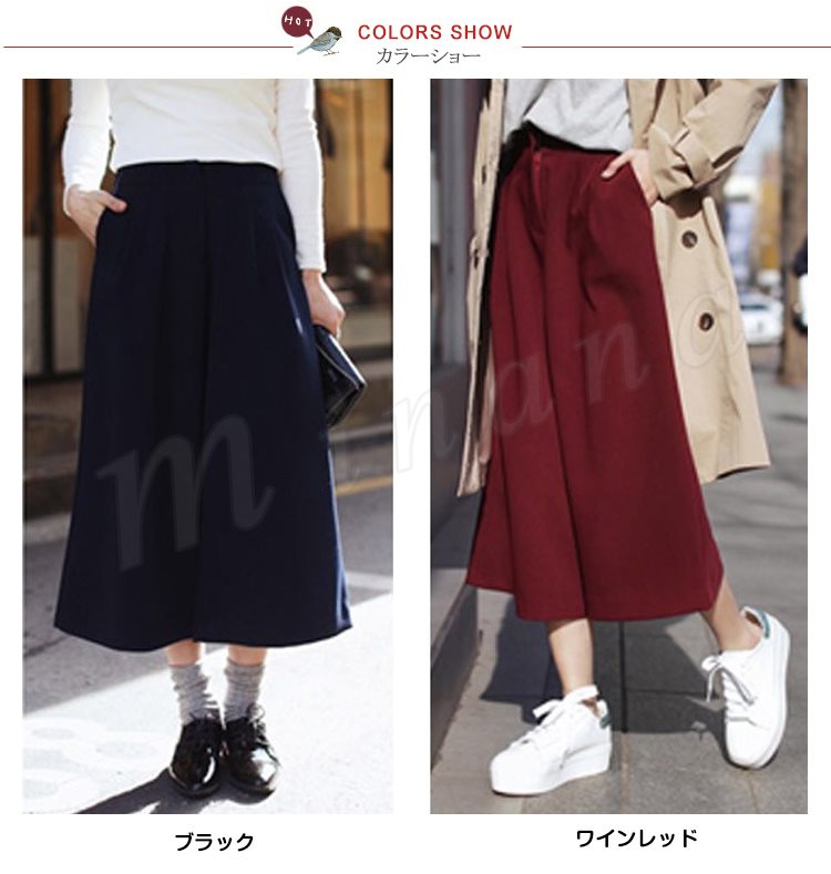 レディースガウチョパンツ大きいサイズ九分丈ワイドパンツロングパンツ厚手パンツ無地ナチュラル風ガチョウパンツ秋冬ワイドパンツ2017