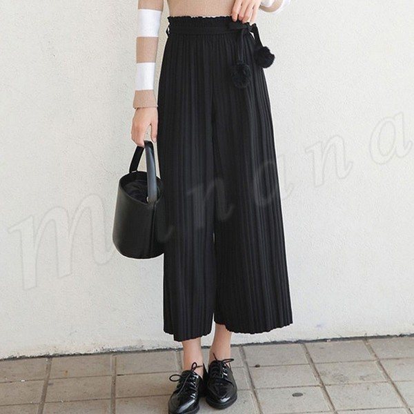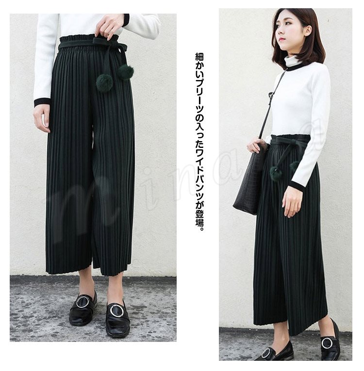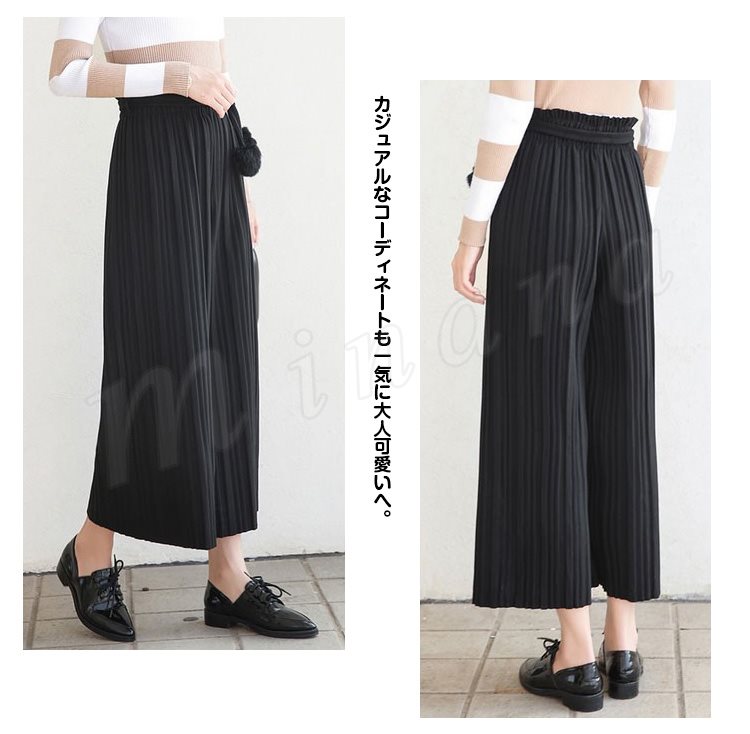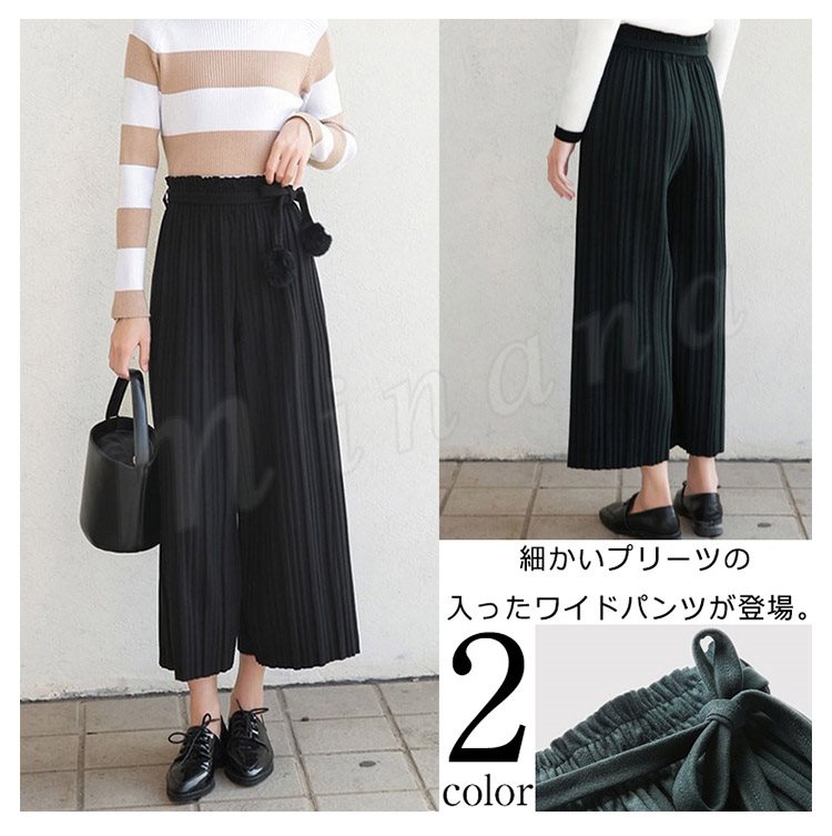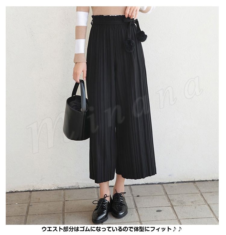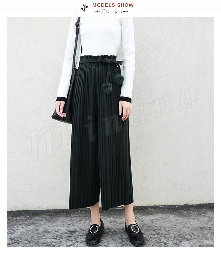 9分丈パンツギャザーパンツスカンツガチョウパンツレディーススカーチョウエストゴムハイウエスト体型カバーゆったり2017春新作