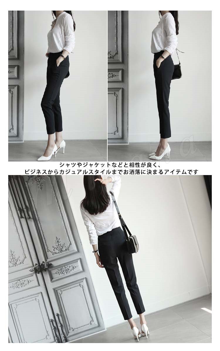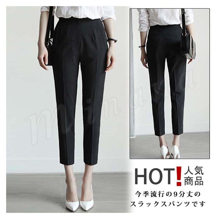 テーパードパンツ9分丈スラックスレディースロング丈パンツアンクル丈ボトムスOLシフォンオフィスビジネスすっきり通勤春夏