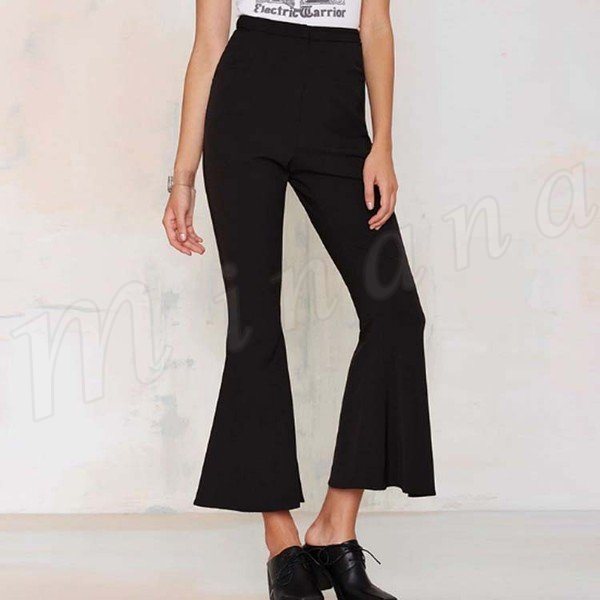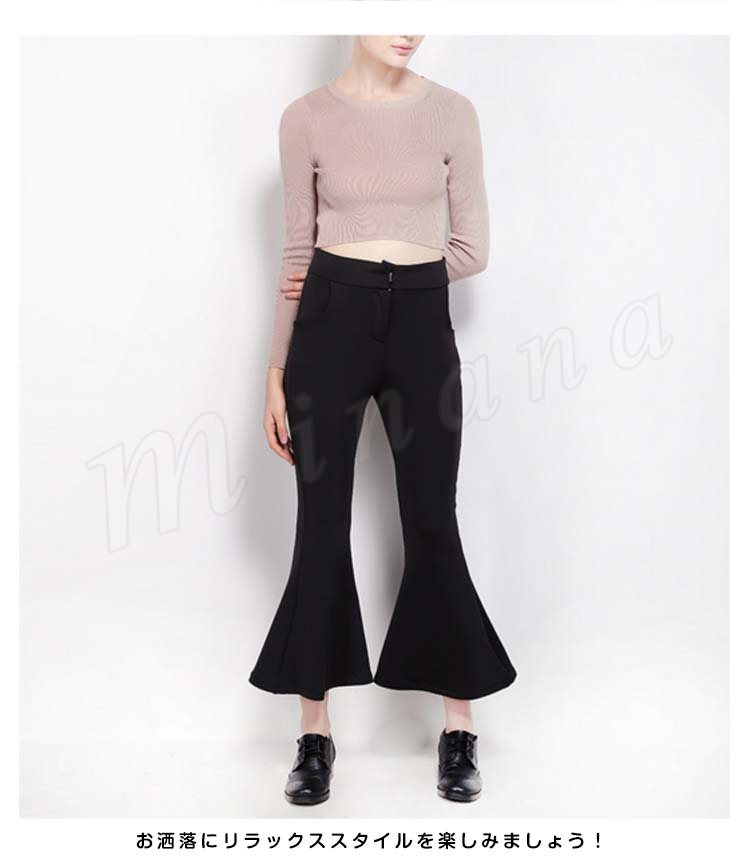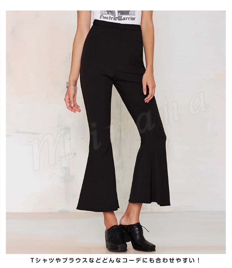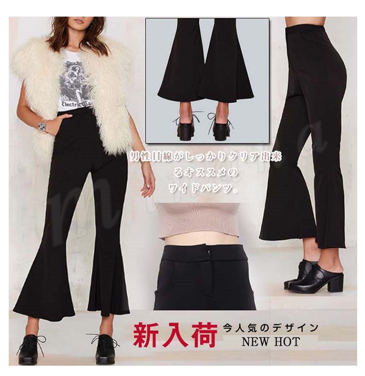 ガウチョパンツワイドパンツハイウエストレディースロングパンツ九分丈パンツ無地パンツボトムスOLゆったりパンツ