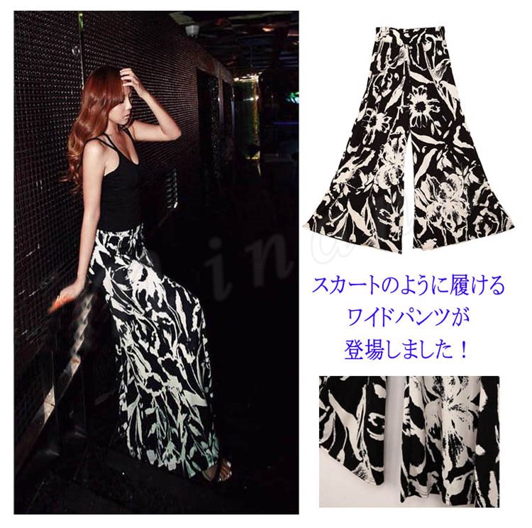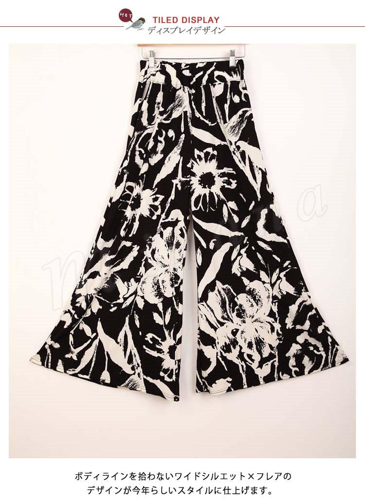花柄ボタニカル柄ロングガウチョパンツスカーチョレディースフレアスカートワイドパンツマキシ丈キュロットフレアパンツ