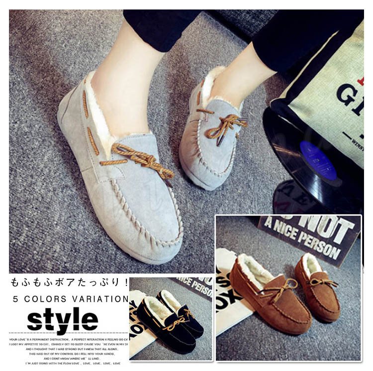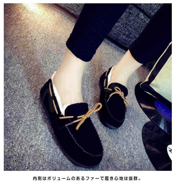 ふわっふわファーがあったかい!モカシン ファー レディース シューズ ファーモカシン フラットシューズ ぺたんこ ペタンコ 靴 冬 リボン フェイクフ