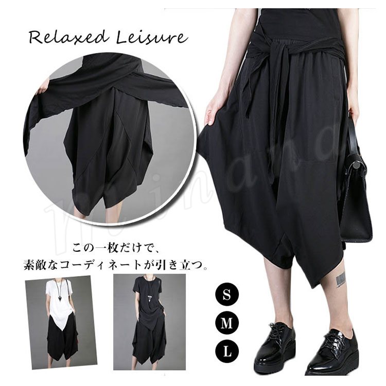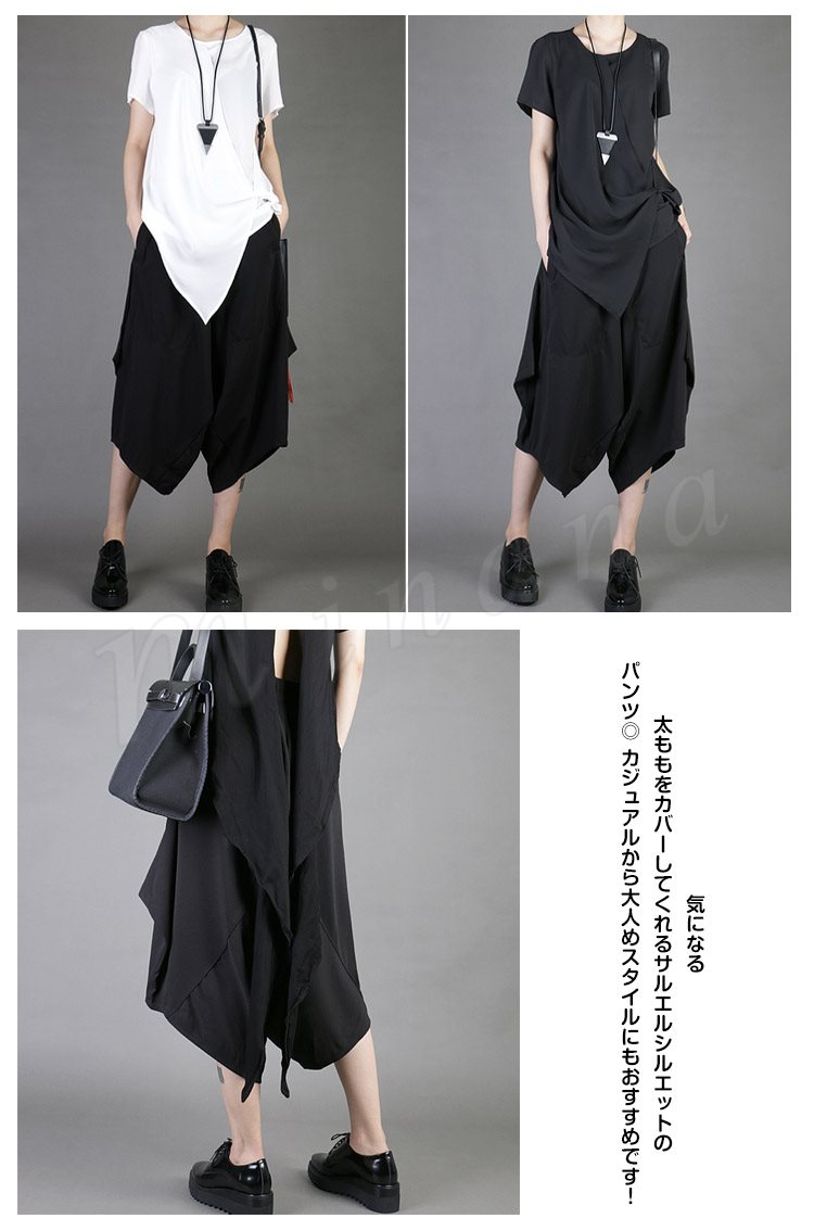 サルエルパンツ スカーチョ ワイド パンツ ガウチョパンツ 薄手 リラックスパンツ ゆるパン 変形ボトムス 楽チン ゆるカワ ヨガ マタニティ