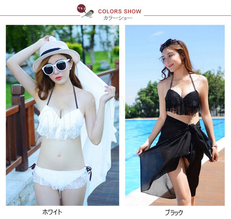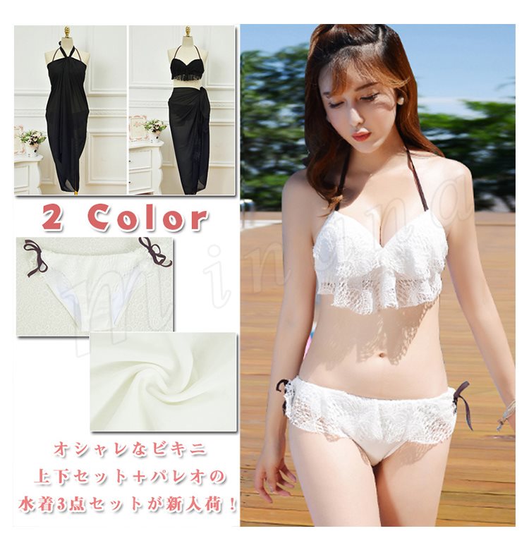 レディースビキニワイヤー付きビキニ上下セット+パレオの3点セットパッド入りビキニレース2017夏新作セパレート水着