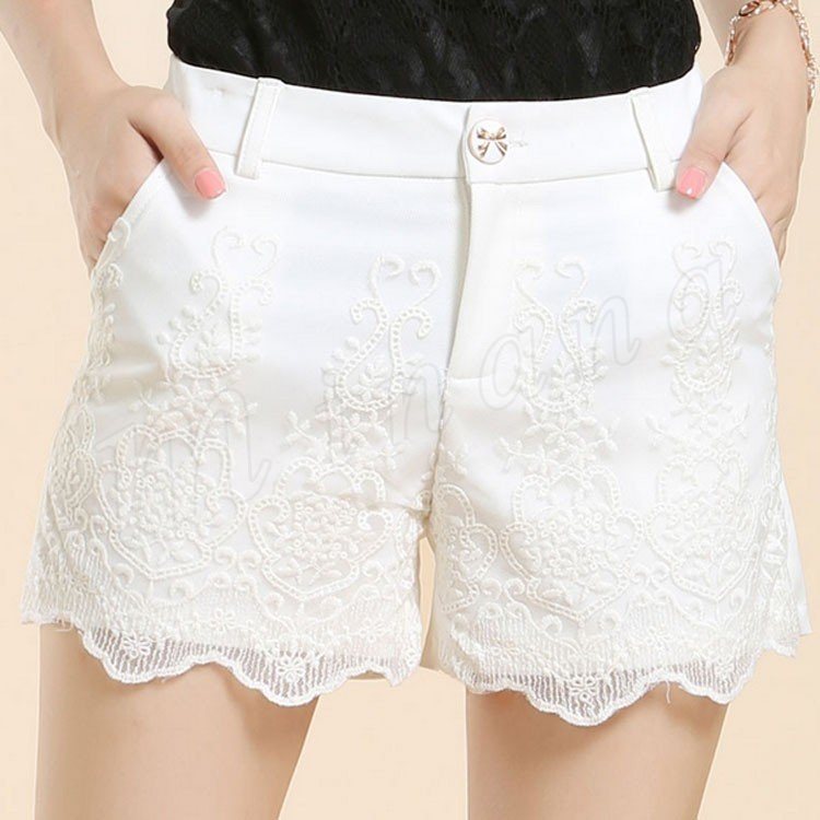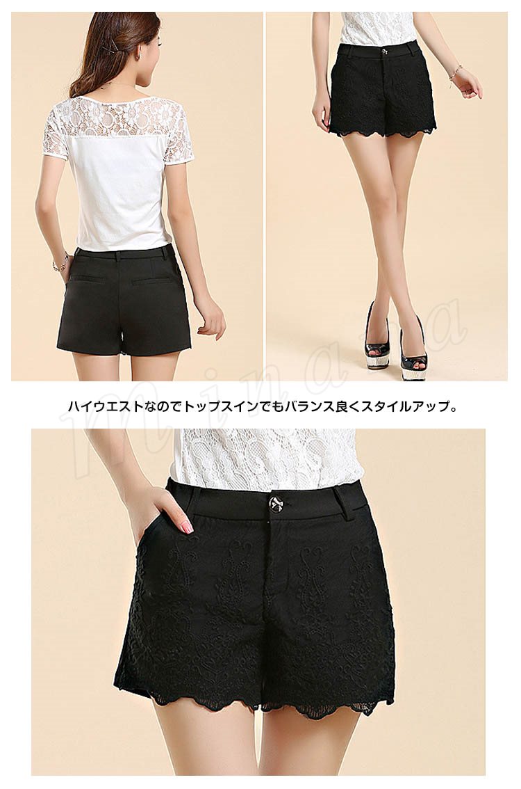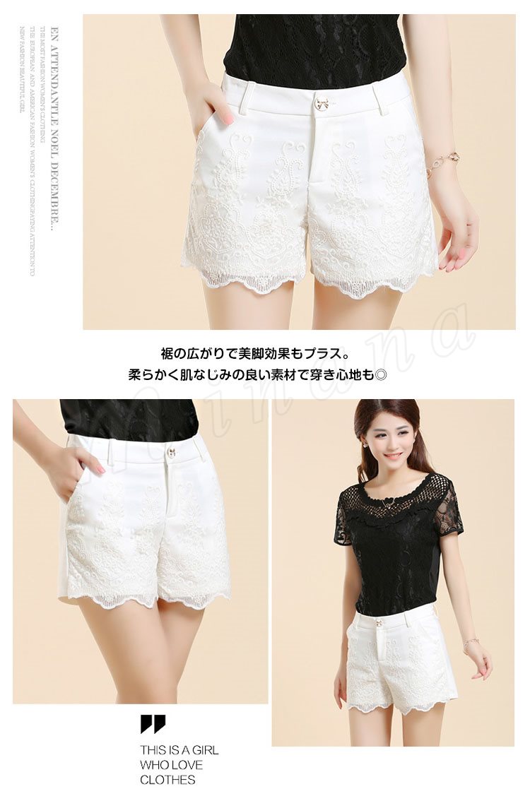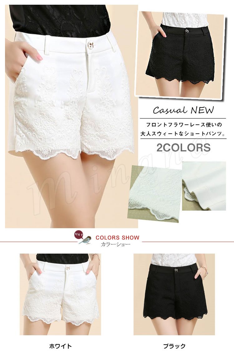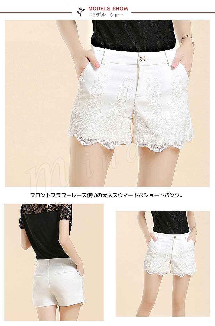 フロントフラワーレース使いの大人スウィートなショートパンツ。