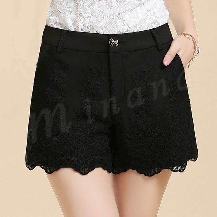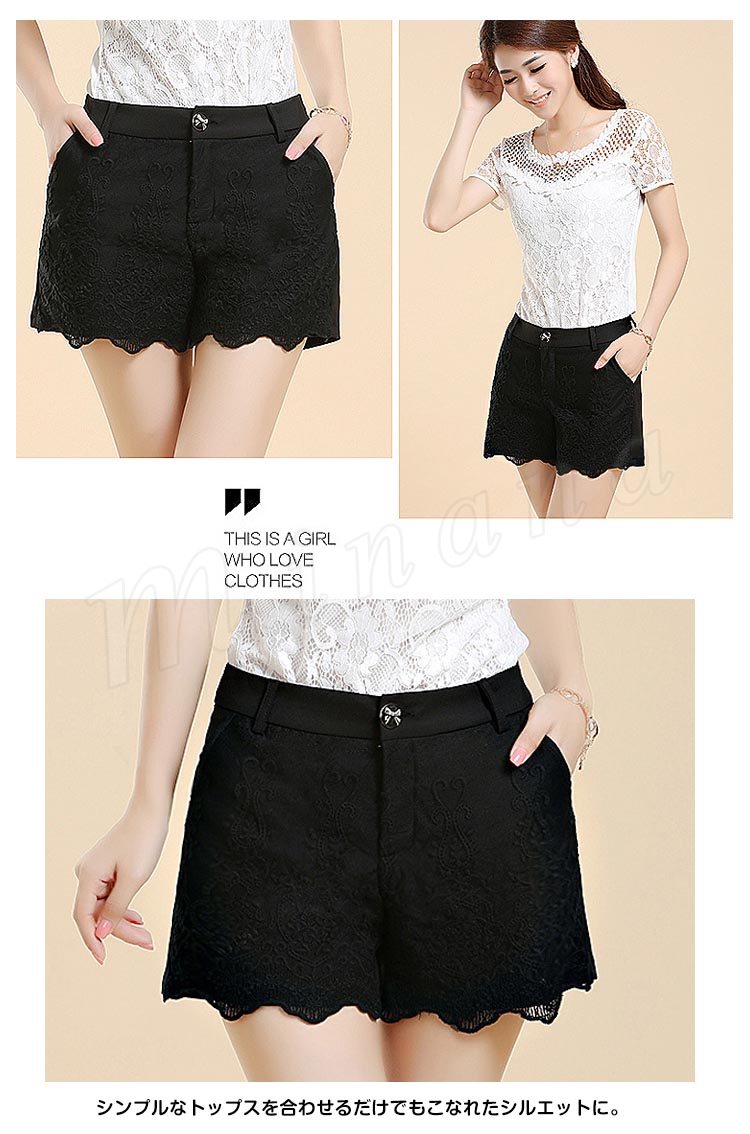 フロントにフラワーレースになって華やか。大きサイズ ショートパンツ フレア ワイドパンツ ガウチョショートパンツ レース 短パン 美脚 脚長効