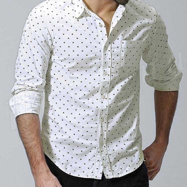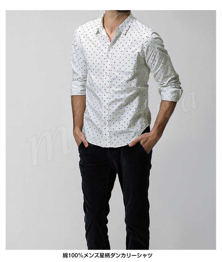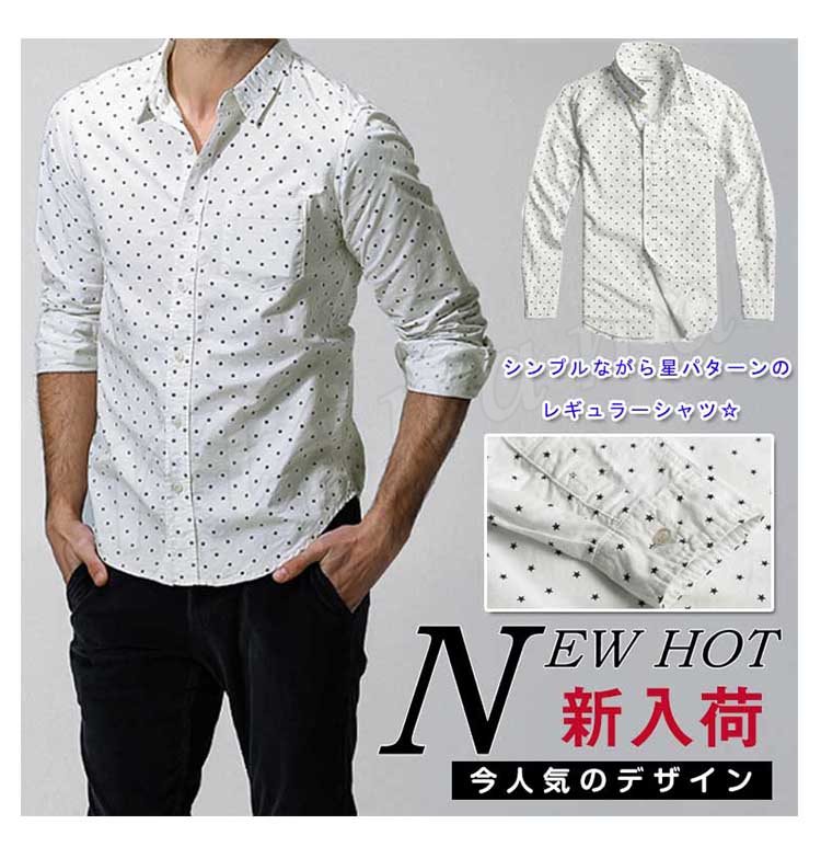 メンズシャツカジュアルシャツ長袖星柄レギュラーカジュアルリラックススタイリッシュ人気