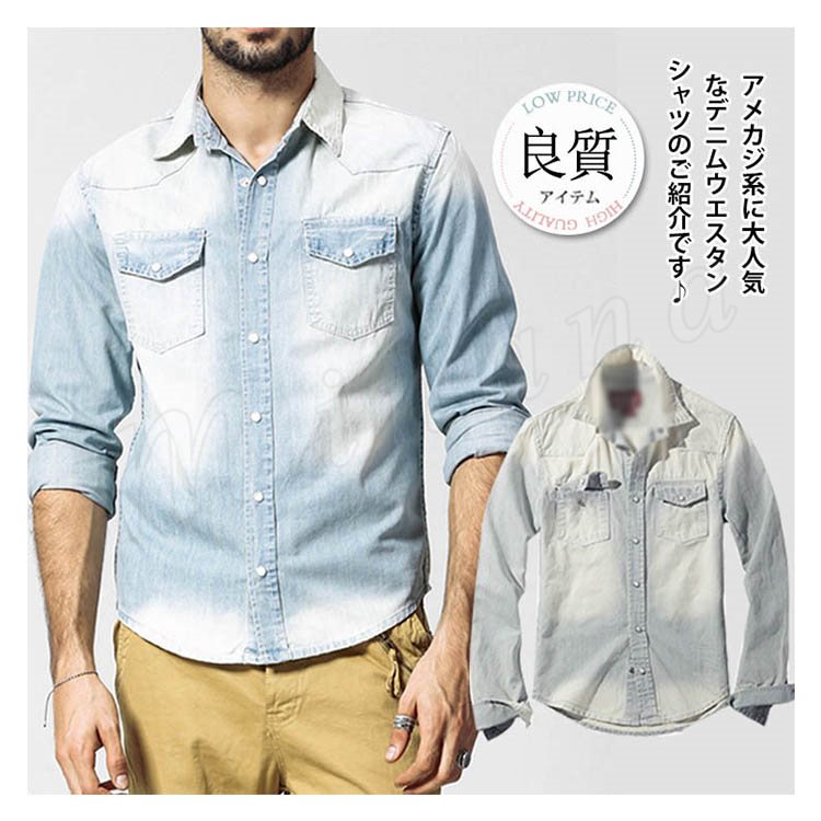 春シャツシャンカジュアルシャツアメカジおしゃれカジュアルデニムデニムシャツメンズ大きいサイズデニムシャツ長袖