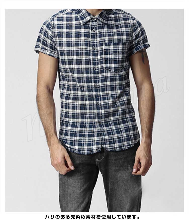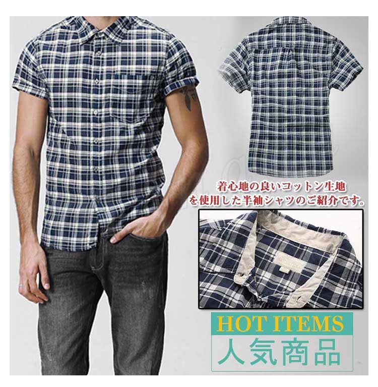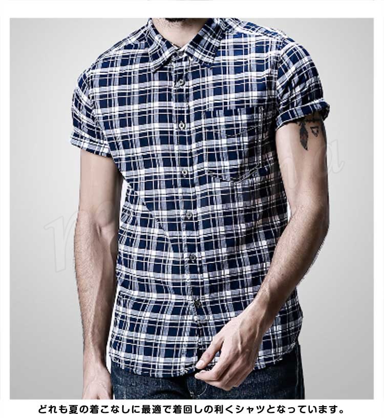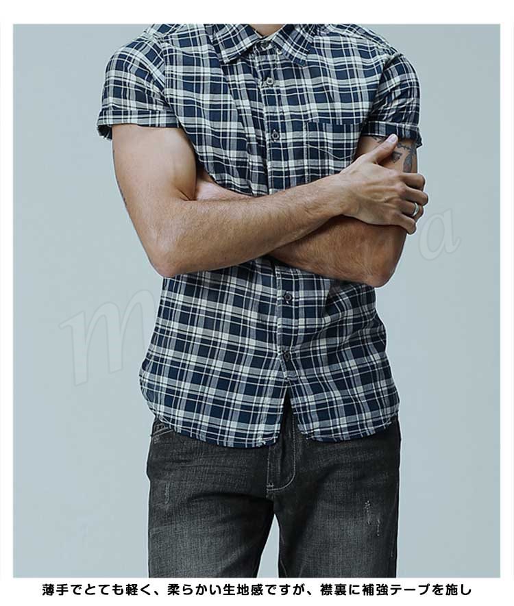 メンズ半袖シャツチェックシャツシャツギンガム半袖りラックスチェックカジュアル