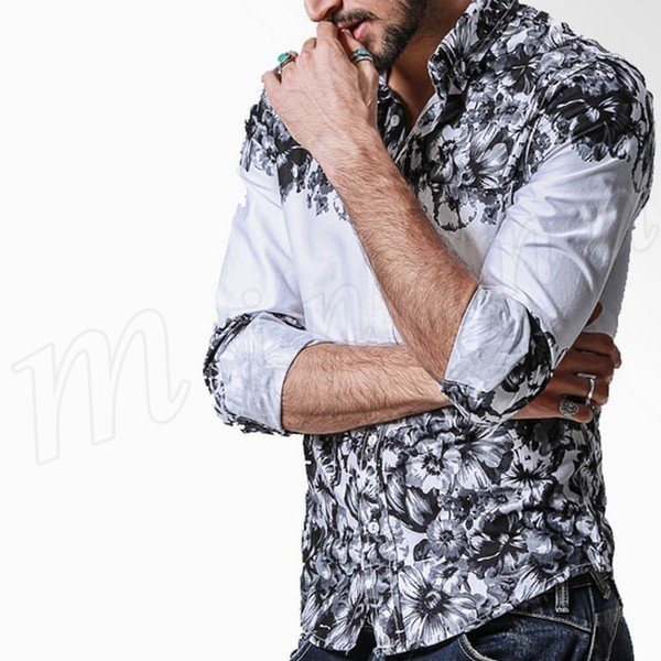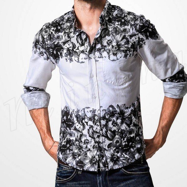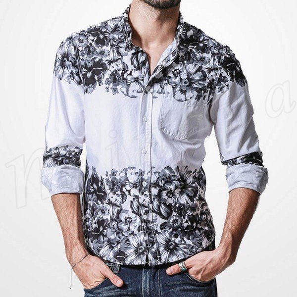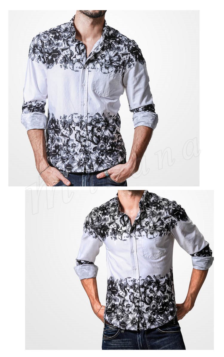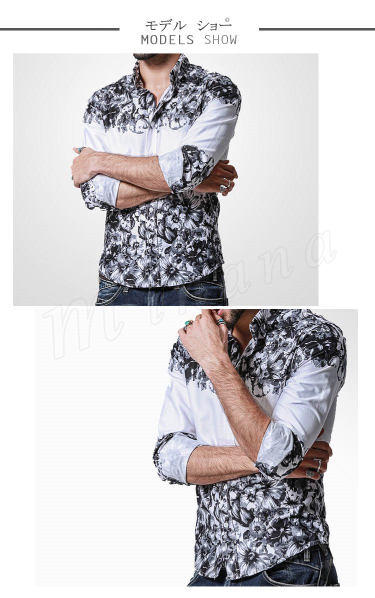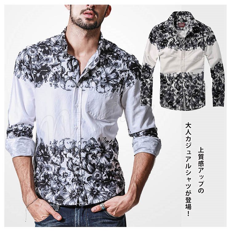 メンズデニムシャツ大きいサイズ長袖アメカジ春シャツカジュアルカジュアルシャツデニムシャツおしゃれ花柄プリント