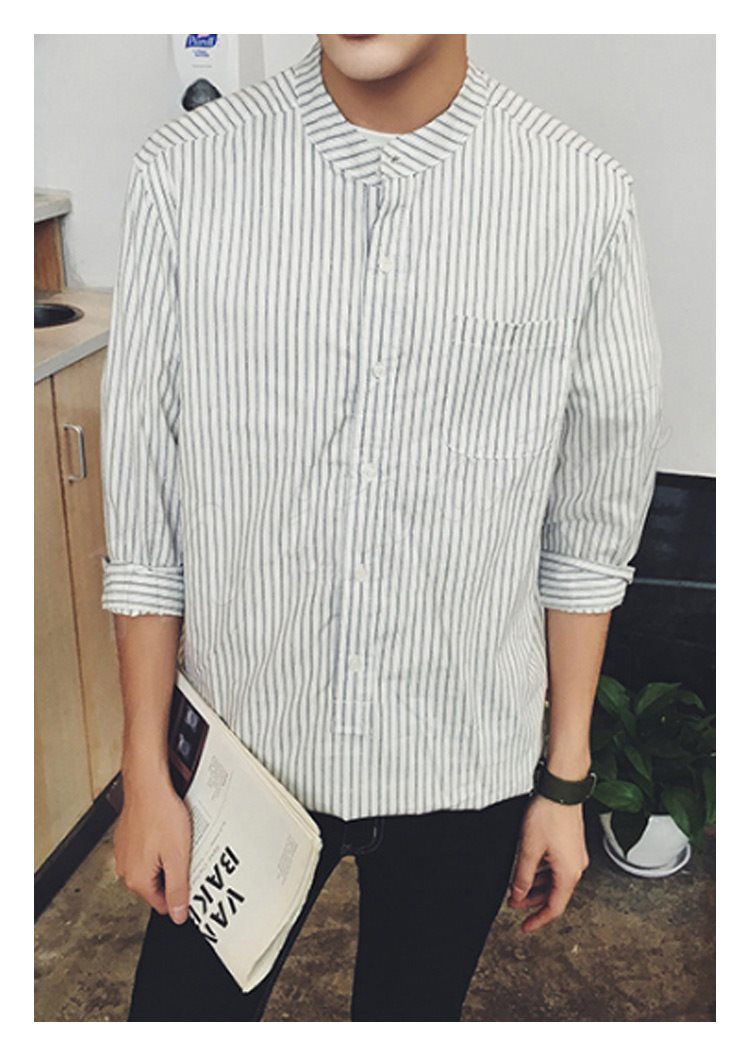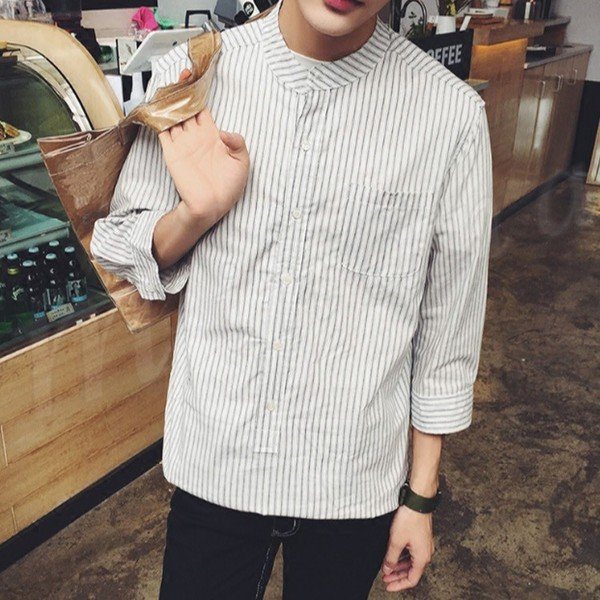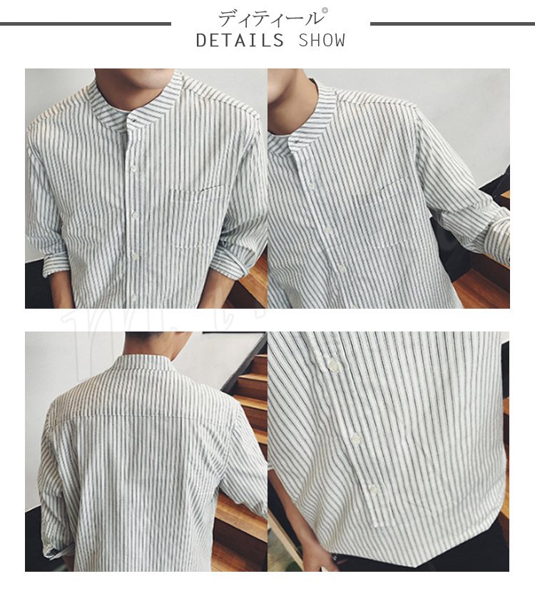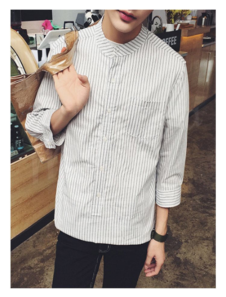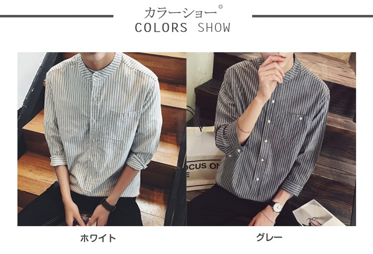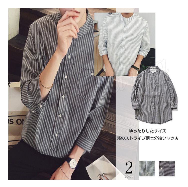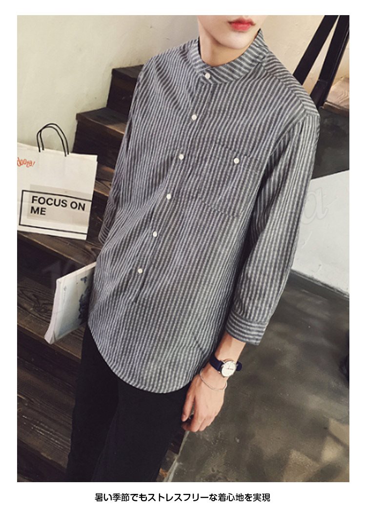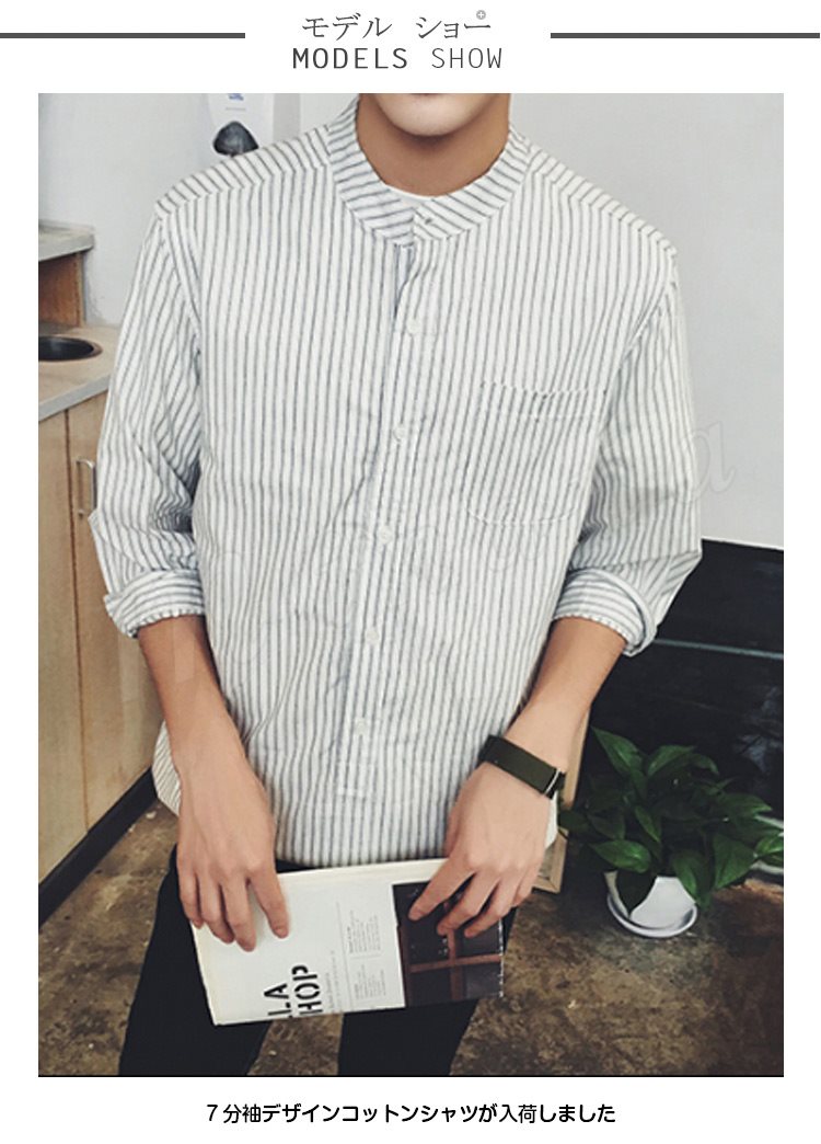 カジュアルシャツシャツメンズ7分袖快適ストライプ綿コットン通勤ワイシャツリラックススタイリッシュ春夏新作韓国スタイル