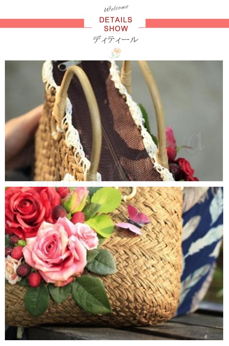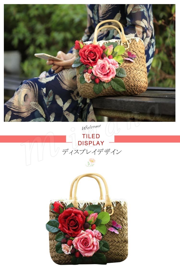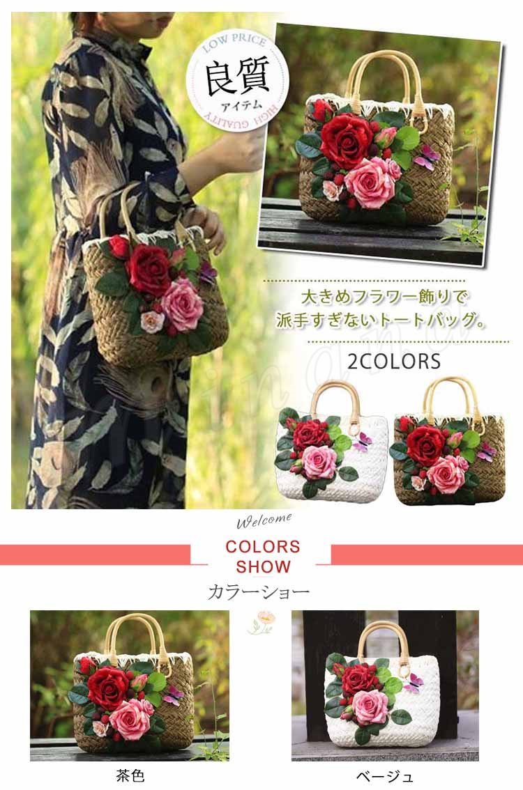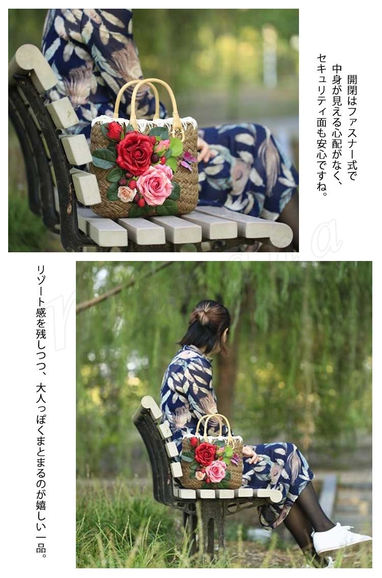 上品Ladyの夏バッグはコレで決まり!かごバッグ レディース カゴバッグ トートバッグ 花柄付きバッグ リゾートバッグ ストローバッグ 上品 フラワー