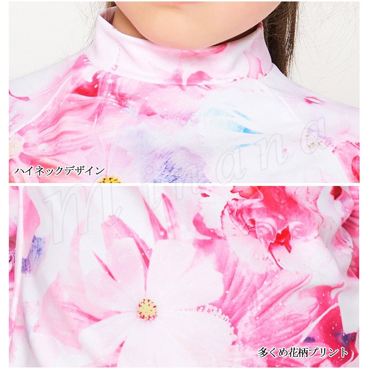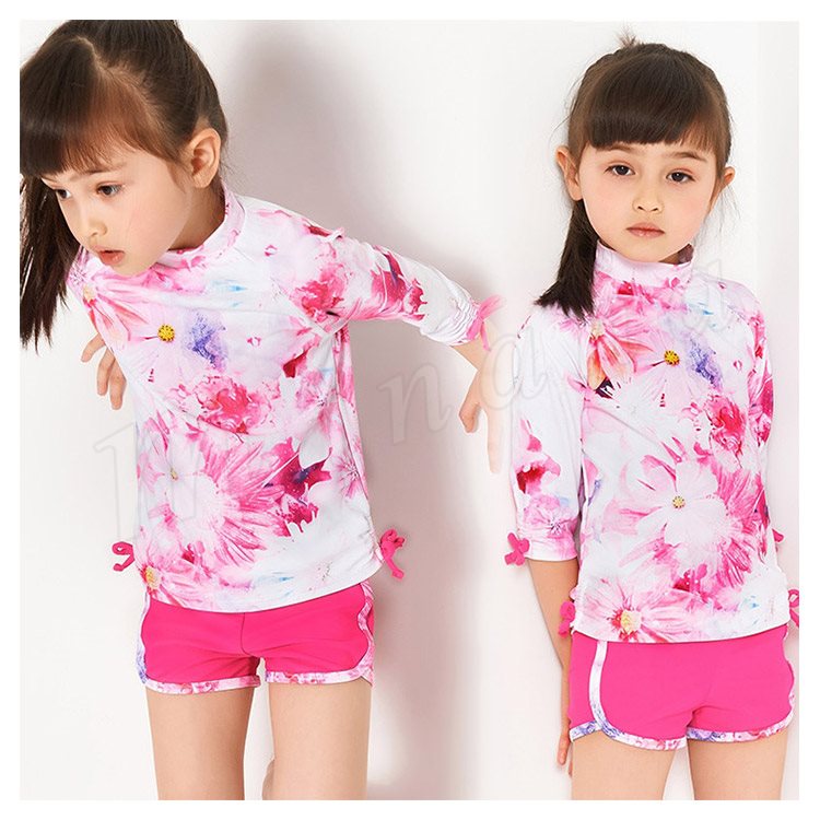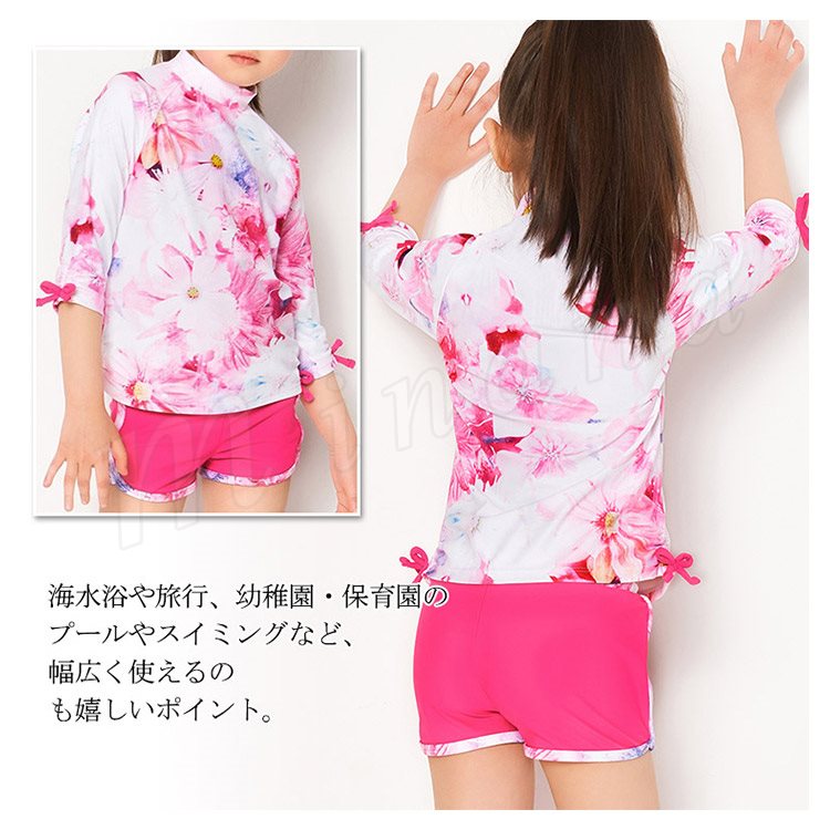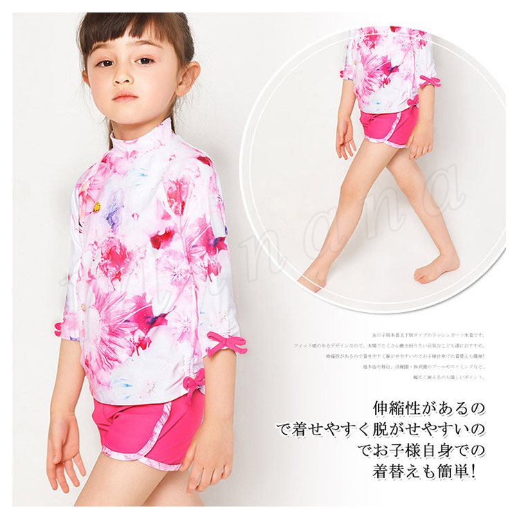 子供水着 女の子水着 2点セット タンキニ セパレート水着 ショーツ 紫外線防止 日焼け 女児水着 花柄 キッズ ジュニア 7分袖トップス