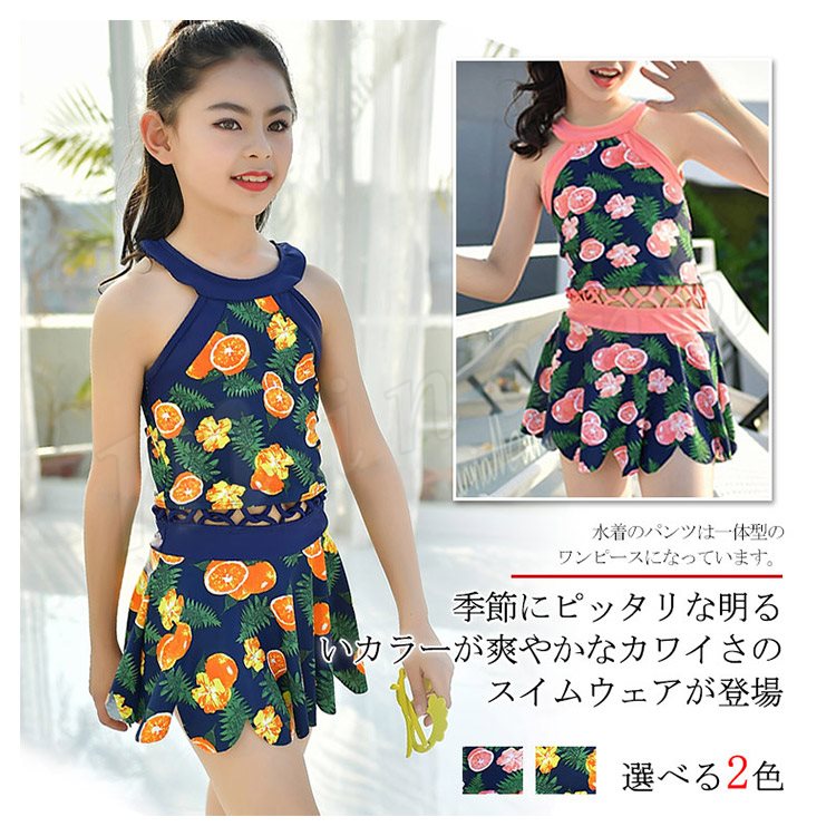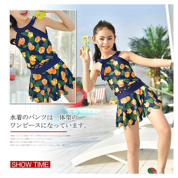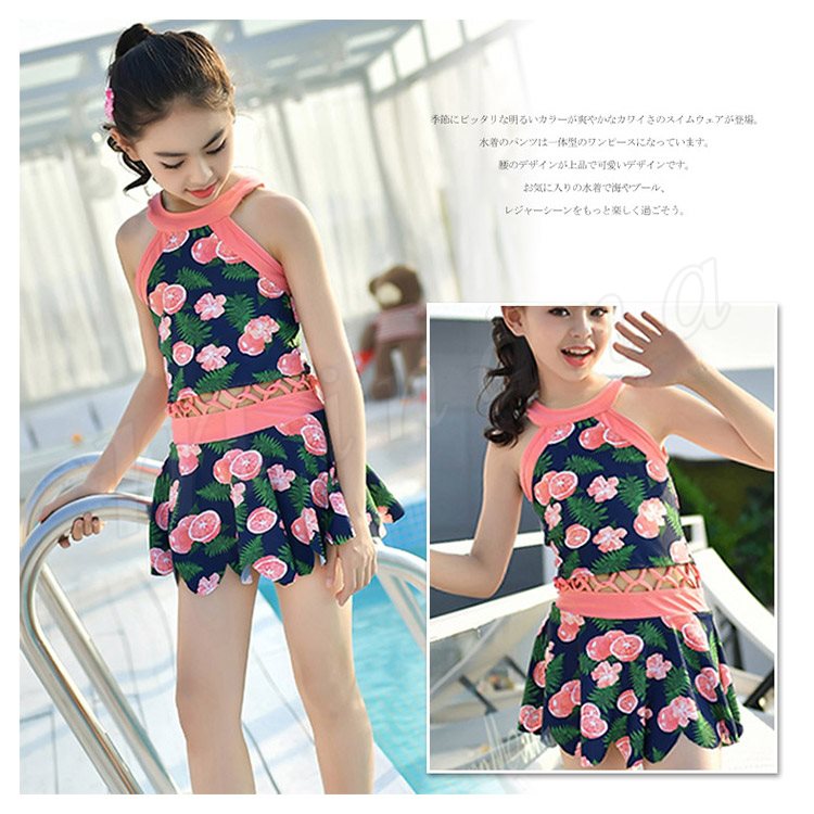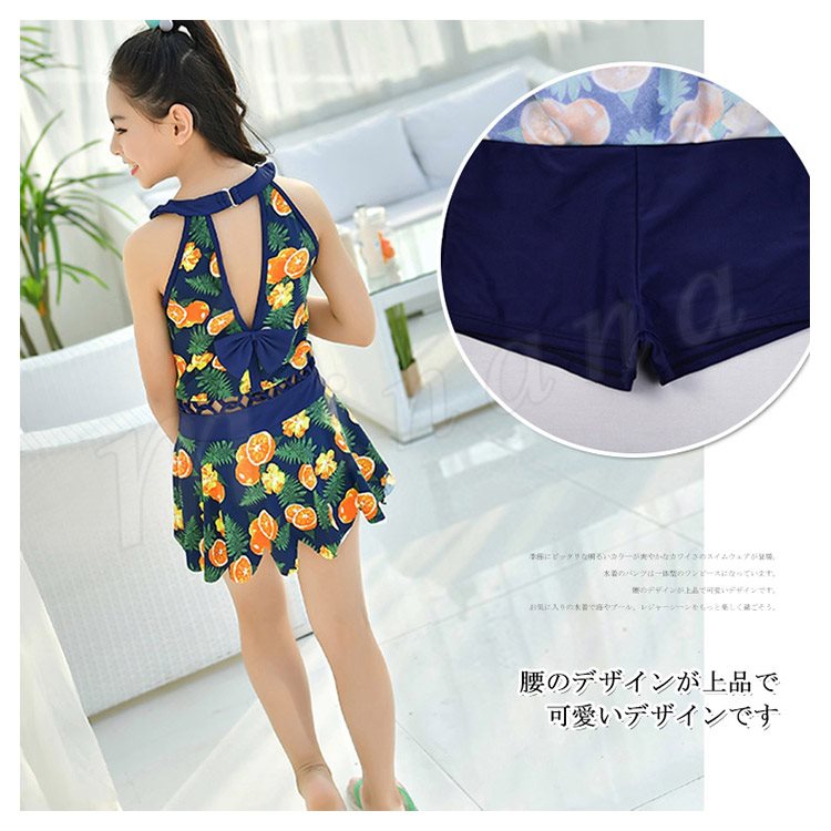 子供水着 女の子 水着ワンピース ホルターネック スイムウェァ キッズ 子供 ジュニア 総柄 花柄 可愛い フリル スクール フ
