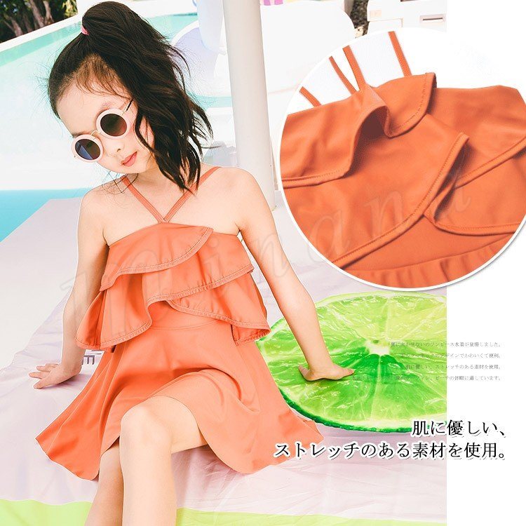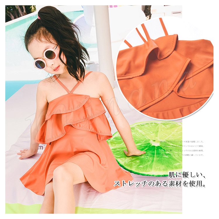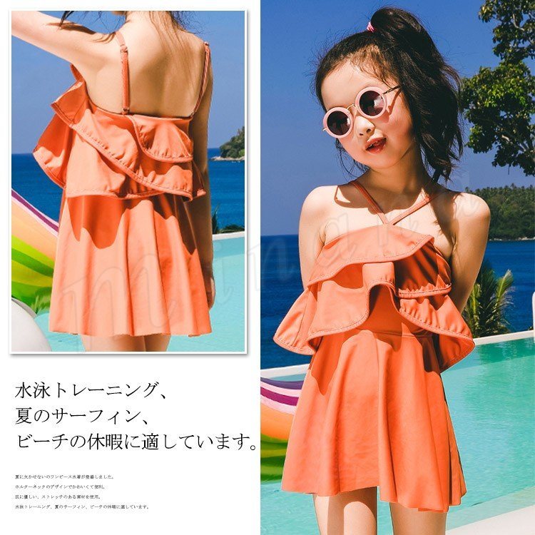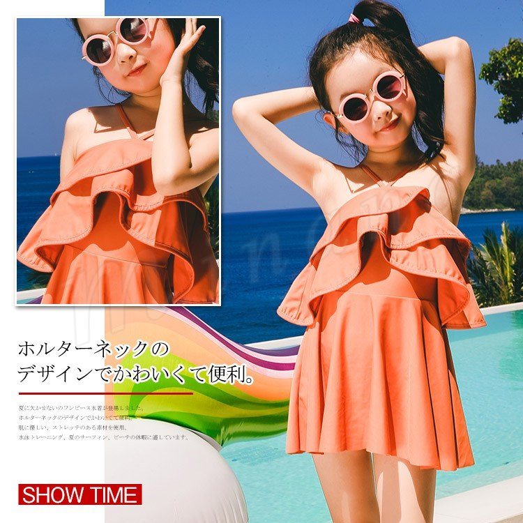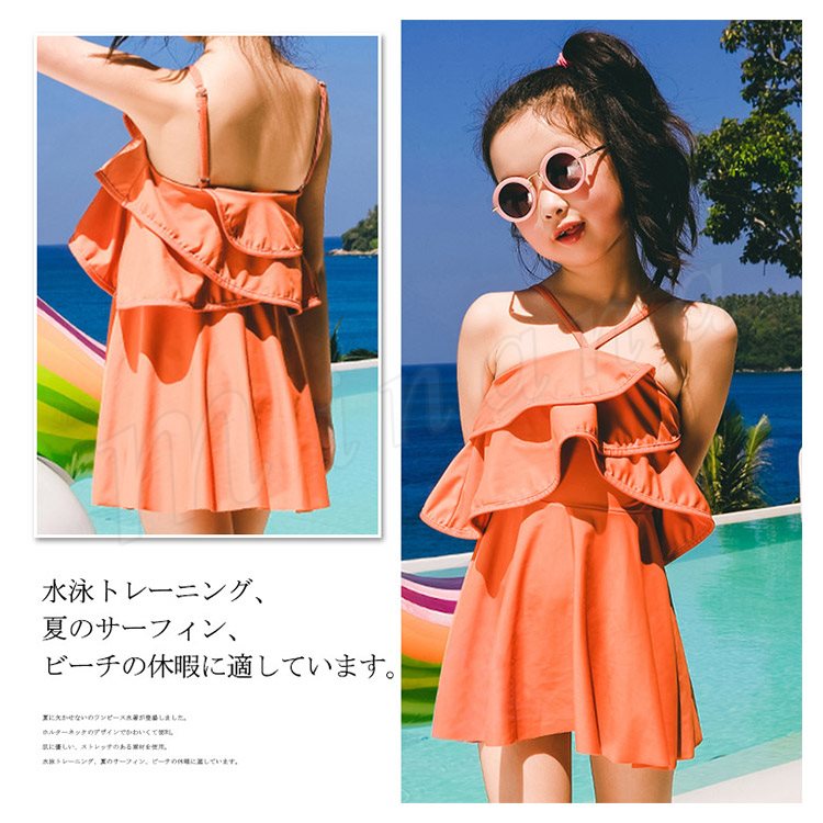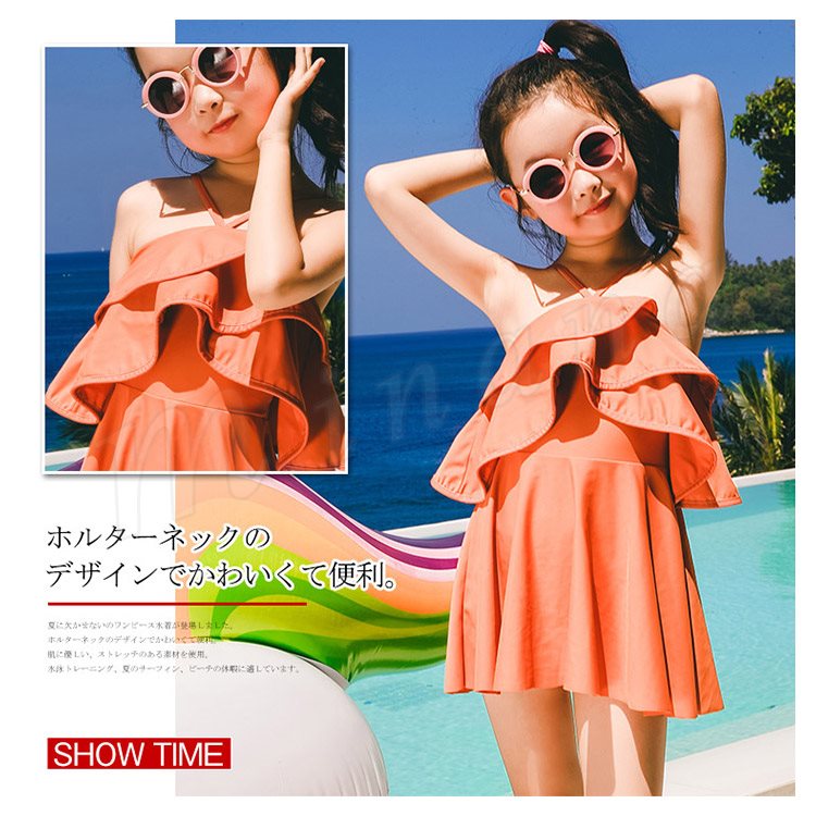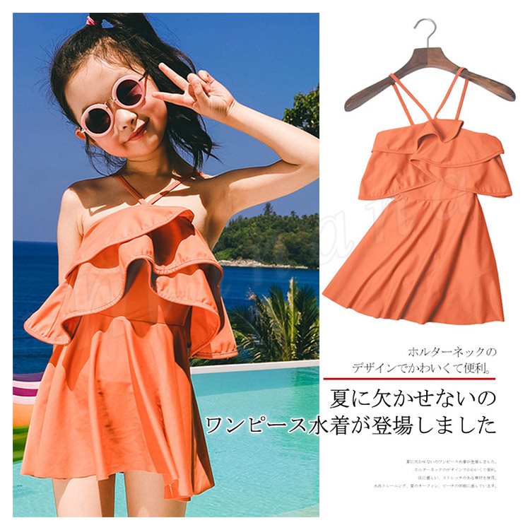 子供水着 女の子 水着ワンピース ホルターネック スイムウェァ キッズ 子供 ジュニア 可愛い フリル スクール フレア ベー