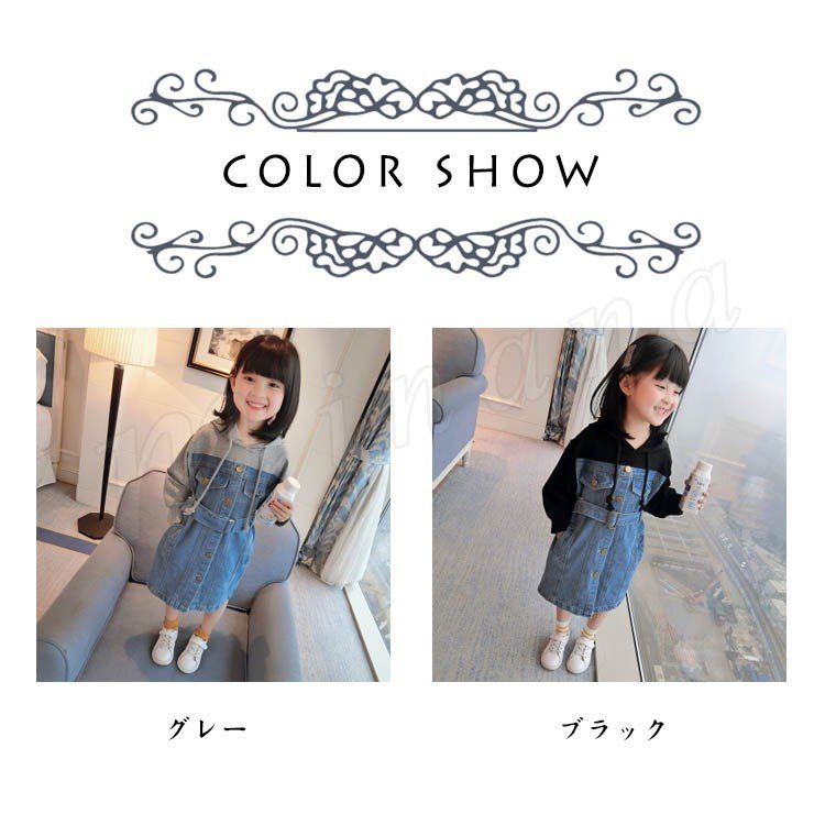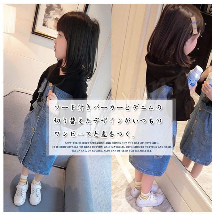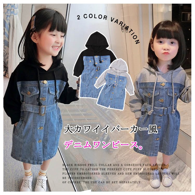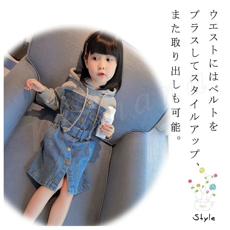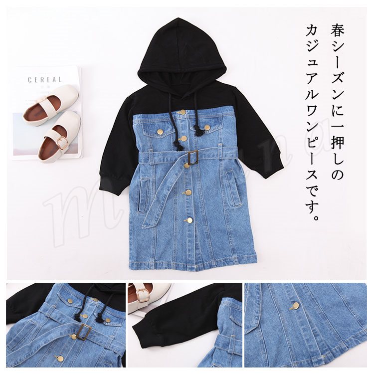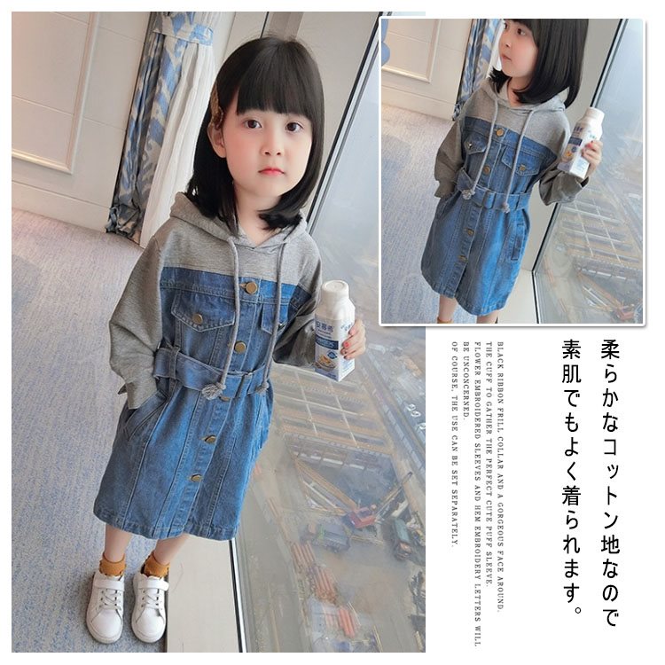 子供服 女の子ワンピース デニムワンピース フード付き ワンピース 女の子 子ども キッズ 長袖 90 100 110 120 130
