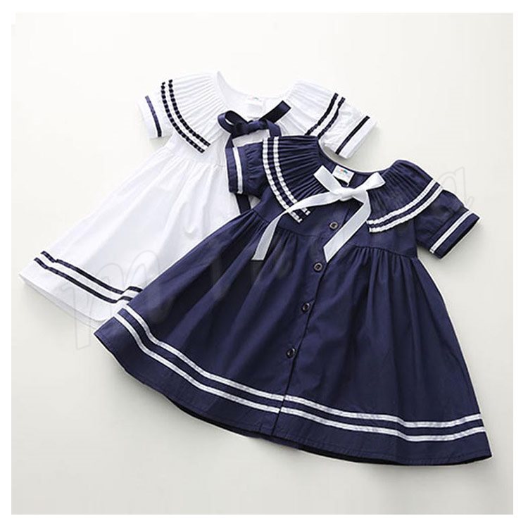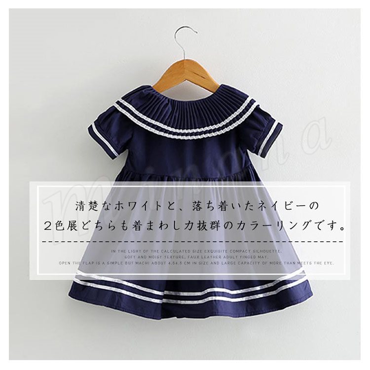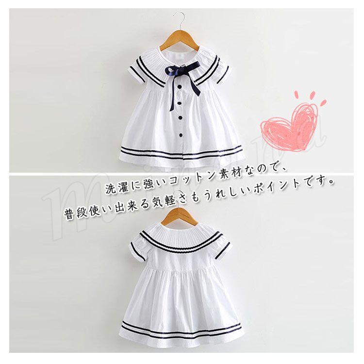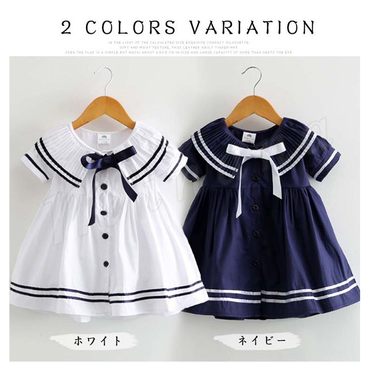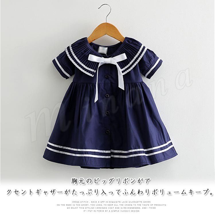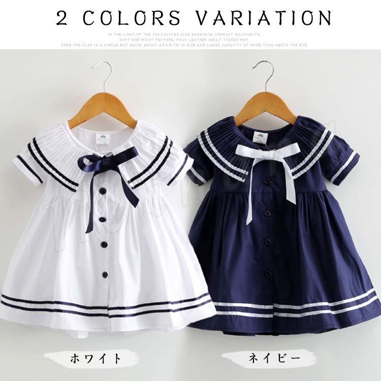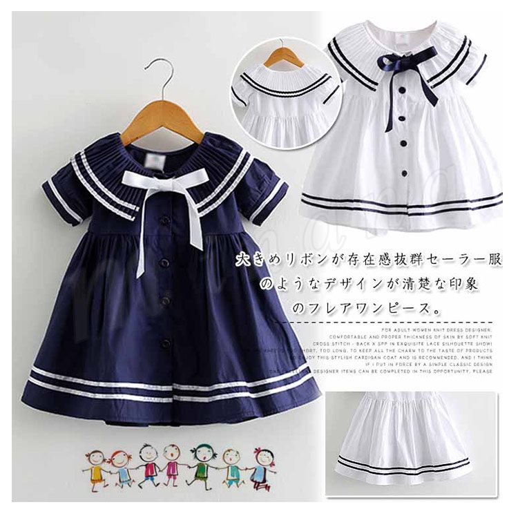 子供服 ワンピース 半袖 セーラー服 マリン リボン ネイビー 紺 白 ホワイト 子供服 キッズ 女の子 セーラー風 海軍風 セーラー襟 襟リ