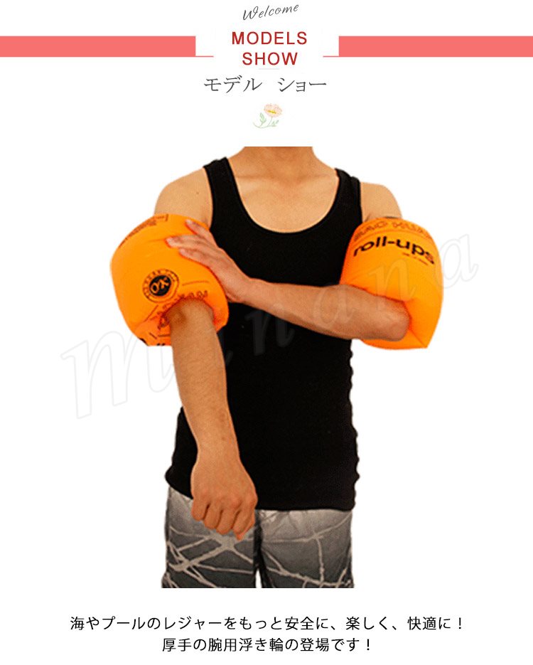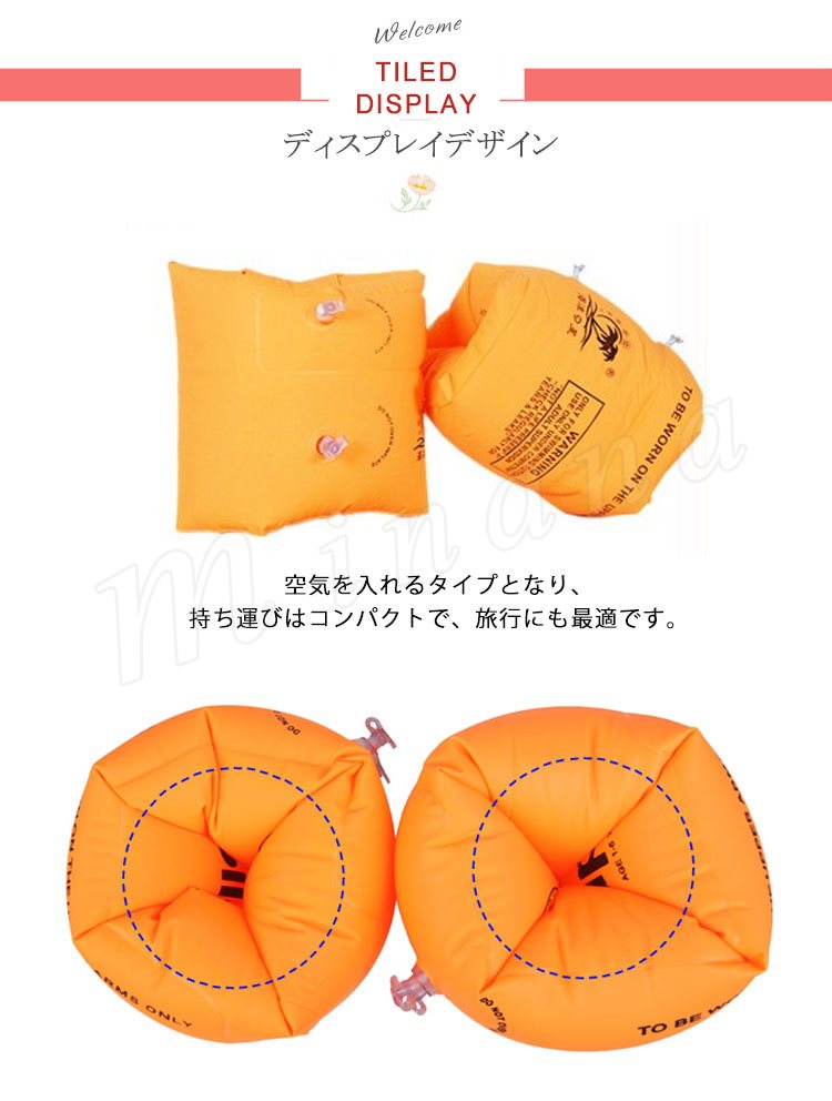 | 海やプールのレジャーをもっと安全に、楽しく、快適に! 厚手の腕用浮き輪の登場です! 水泳の練習に最適! 空気を入れるタイプとなり、持ち運びはコンパクトで、旅行にも最適です。 | |