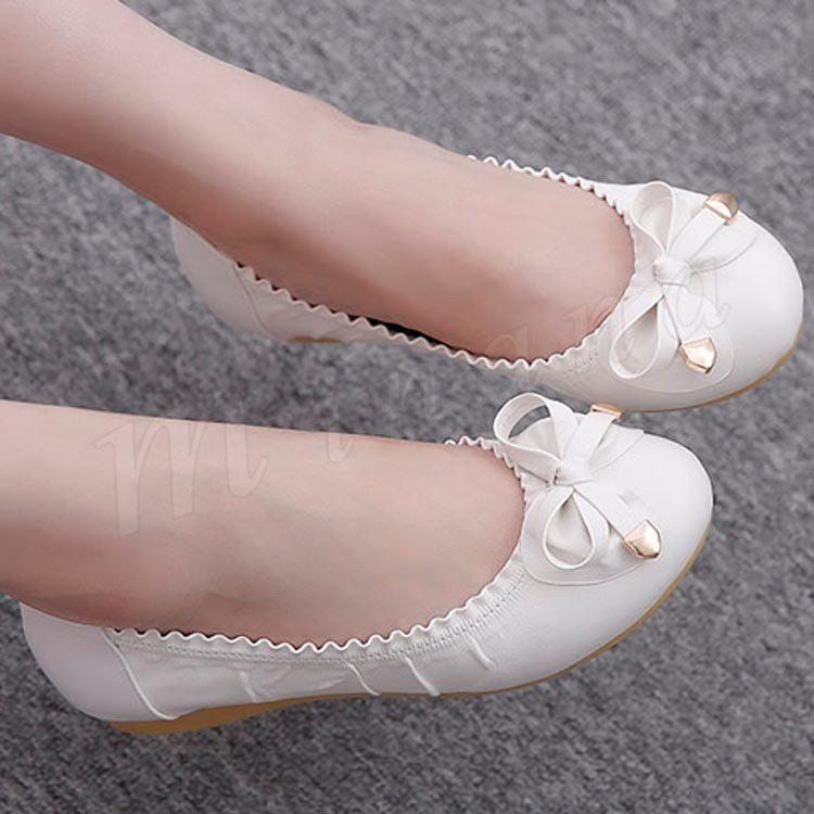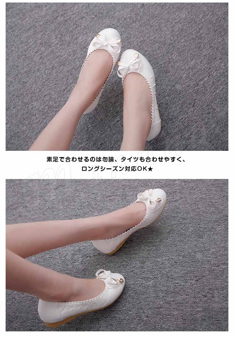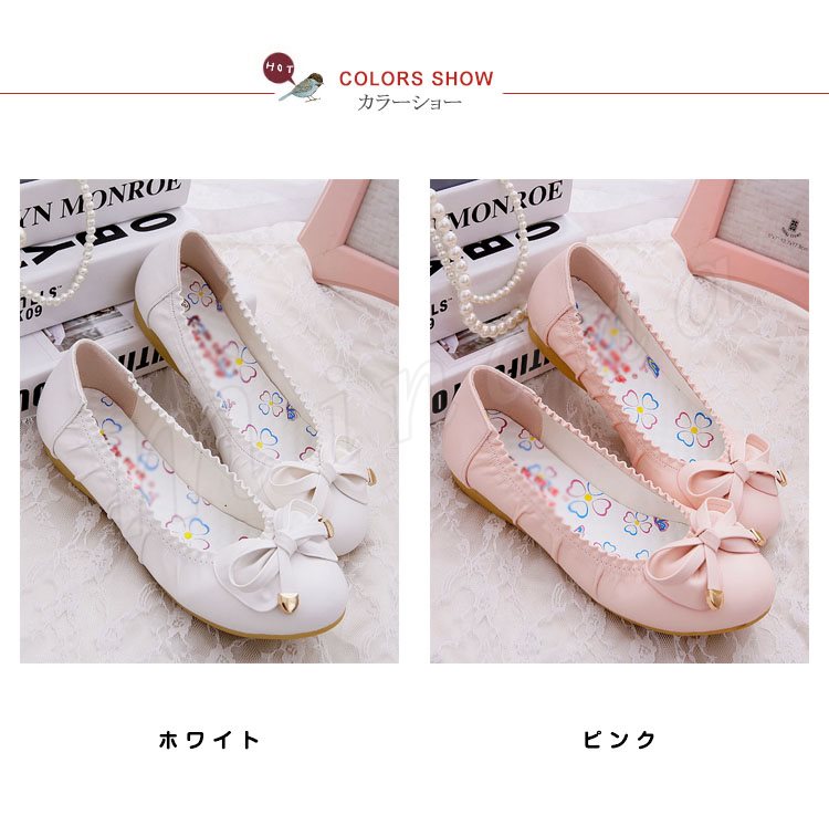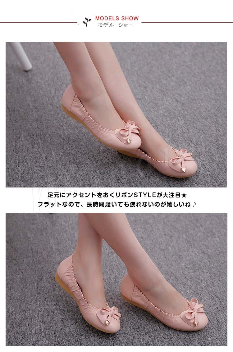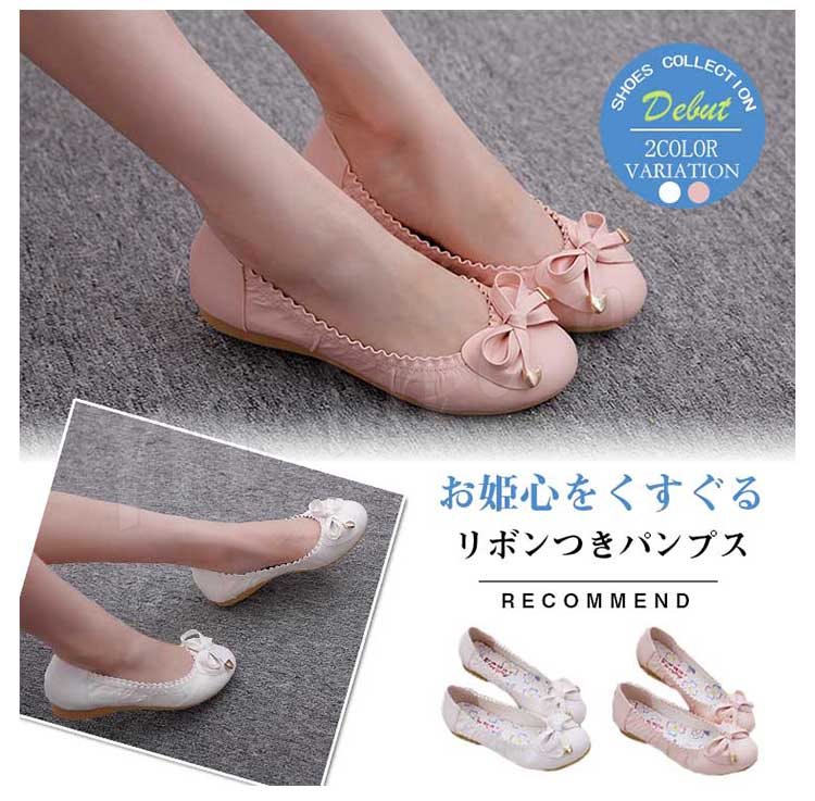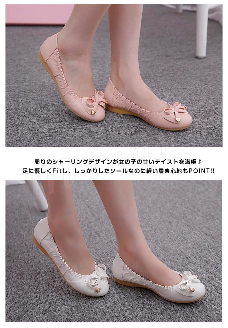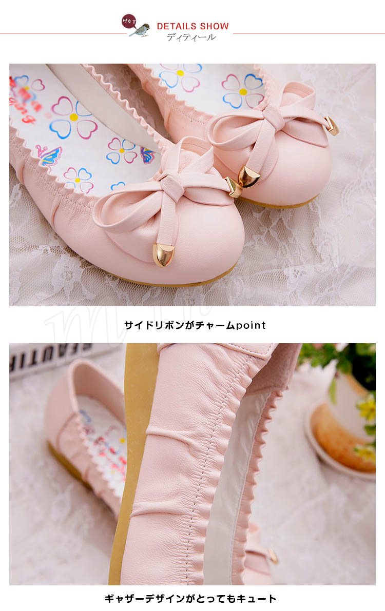 パンプス ラウンドトゥ サイドリボン付き フラットシューズ ラウンドトゥパンプス レディースシューズ シューズ 靴 ぺたんこ ぺたんこ靴 レザーパンプ