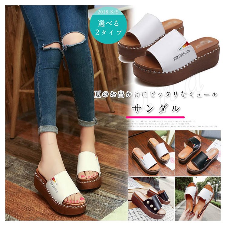 [4色展開]ミュール レディース 歩きやすい 厚底 サンダル ウェッジソール 太ヒール ウエッジソール 疲れない 歩きやすい 靴 春夏 可愛い 女子