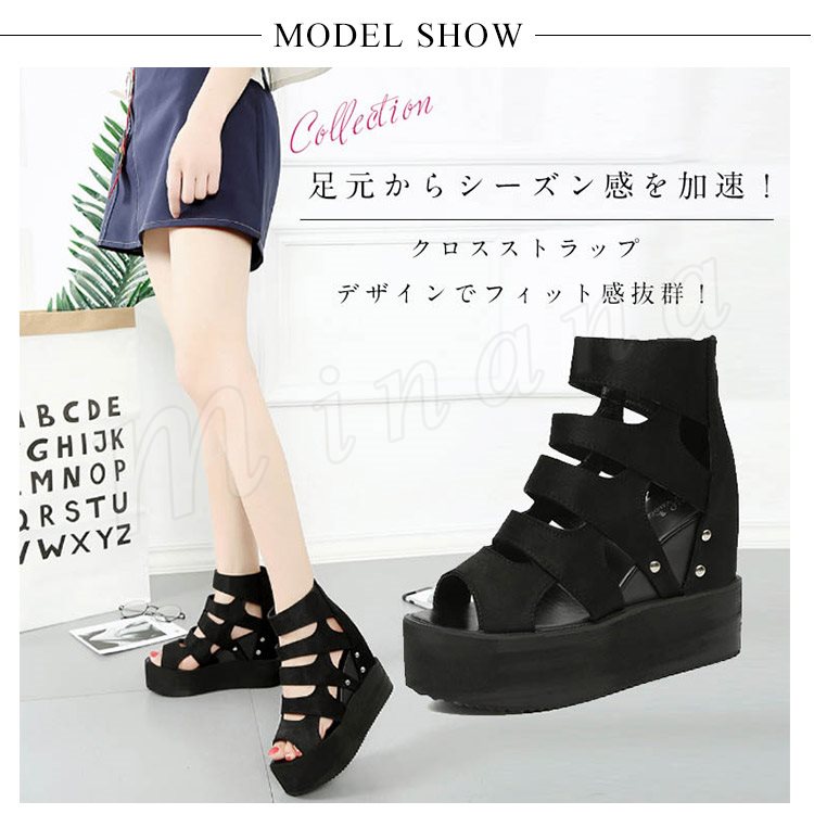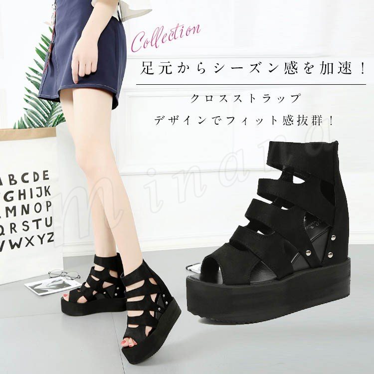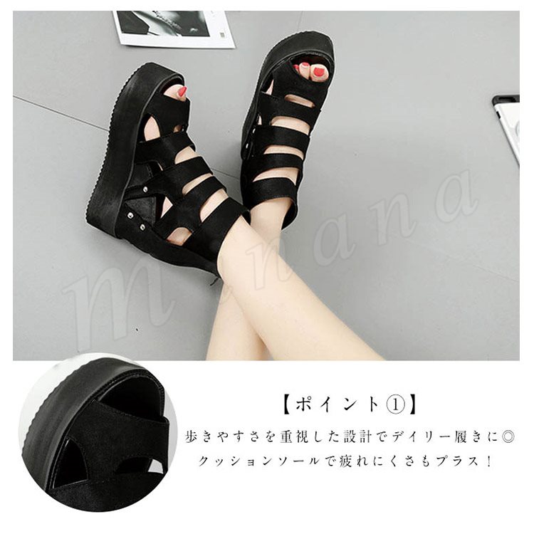 [3色展開]ウエッジソールサンダル サンダル レディース ギリーサンダル 厚底サンダル ウェッジソール バックストラップ 歩きやすい 痛くない おしゃ