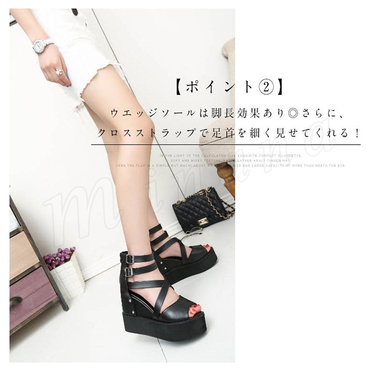 | 楽にスタイルアップ出来るウェッジソールサンダル♪ 足元からシーズン感を加速! クロスストラップデザインでフィット感抜群! 軽い履き心地で夏のアウトドアにもおすすめ。 | |