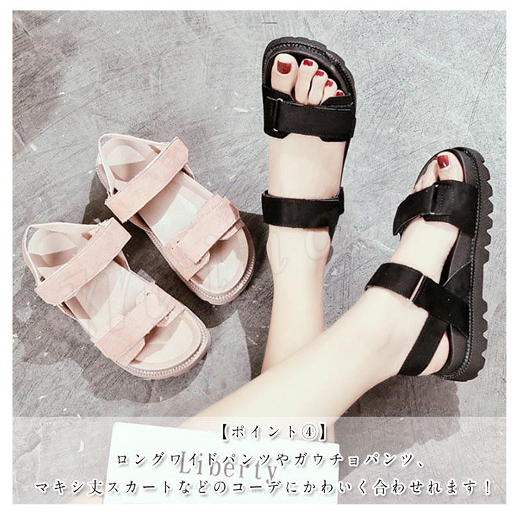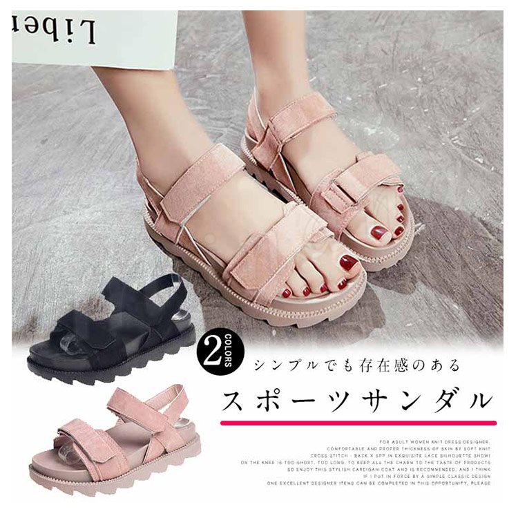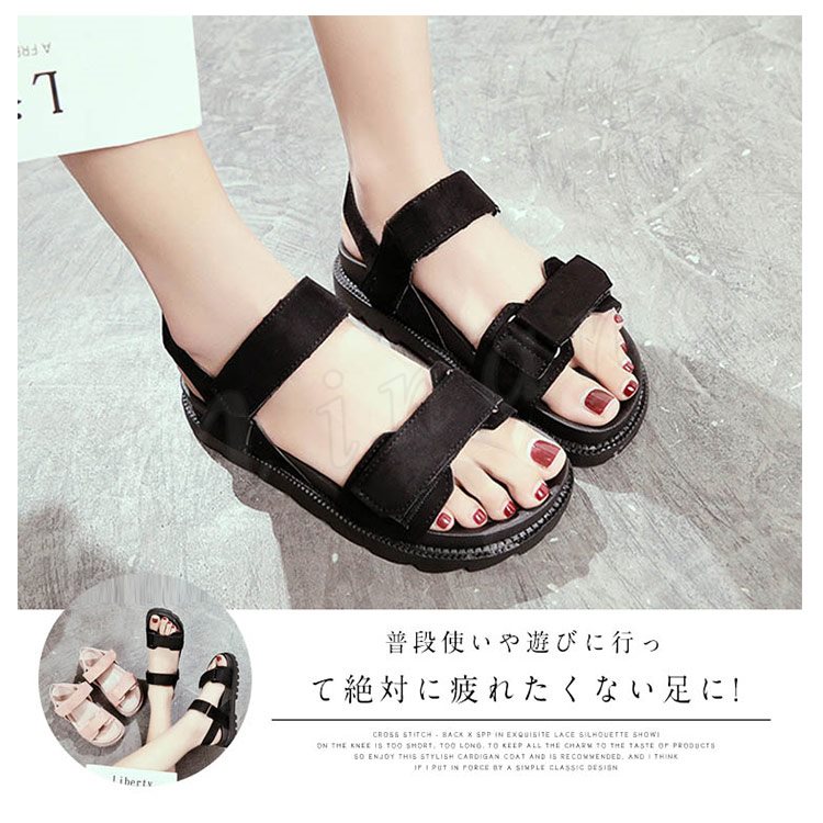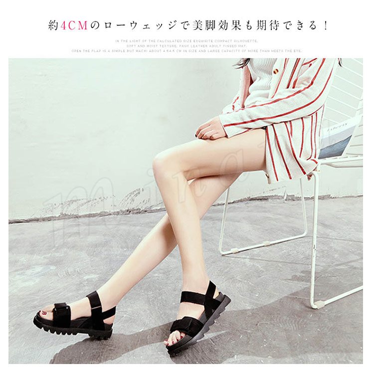 [2色]スポーツサンダル レディース マジックテープ サンダル ウエッジソール コンフォートサンダル 厚底 美脚 フラット 美脚 疲れない 歩きやすい