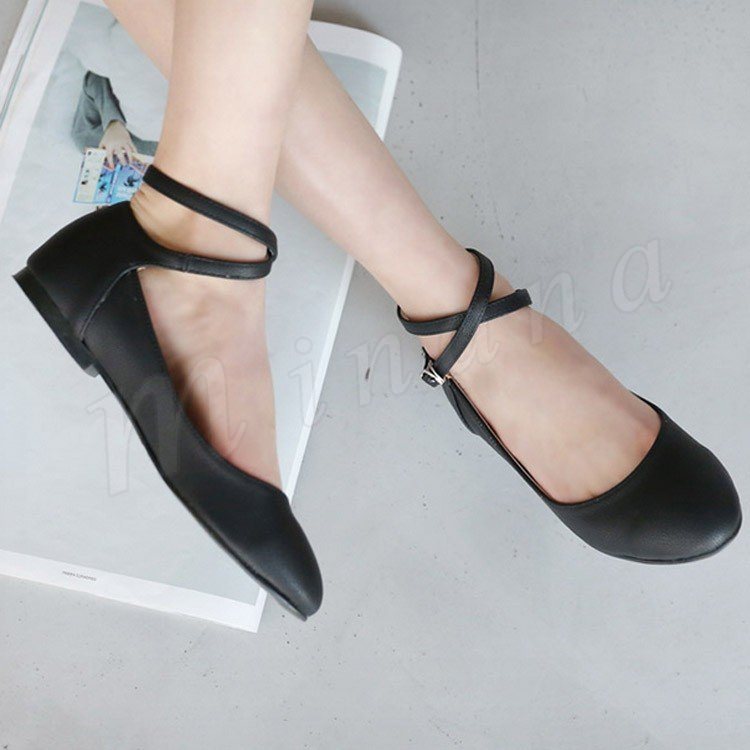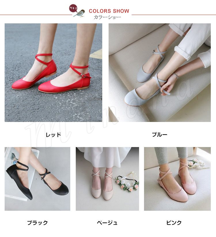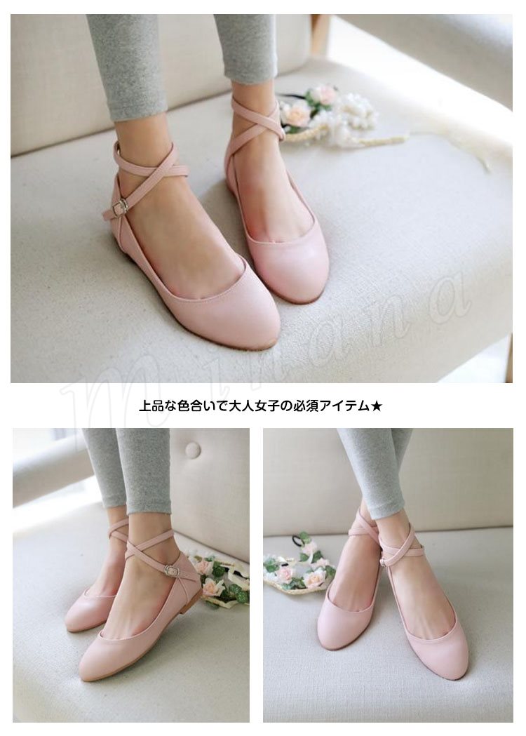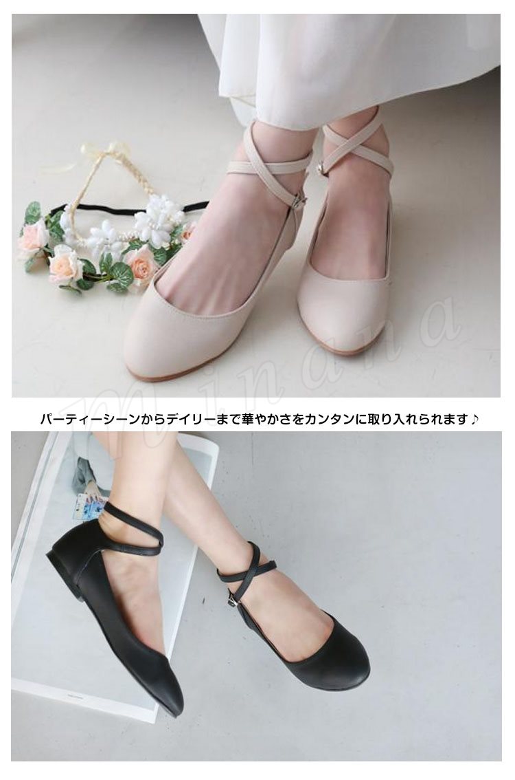 クロス ストラップ パンプス 痛くない ぺたんこ ぺたんこ靴 バレエシューズ パンプス クロスベルト ラウンドトゥ パンプス アンクルストラップ パン