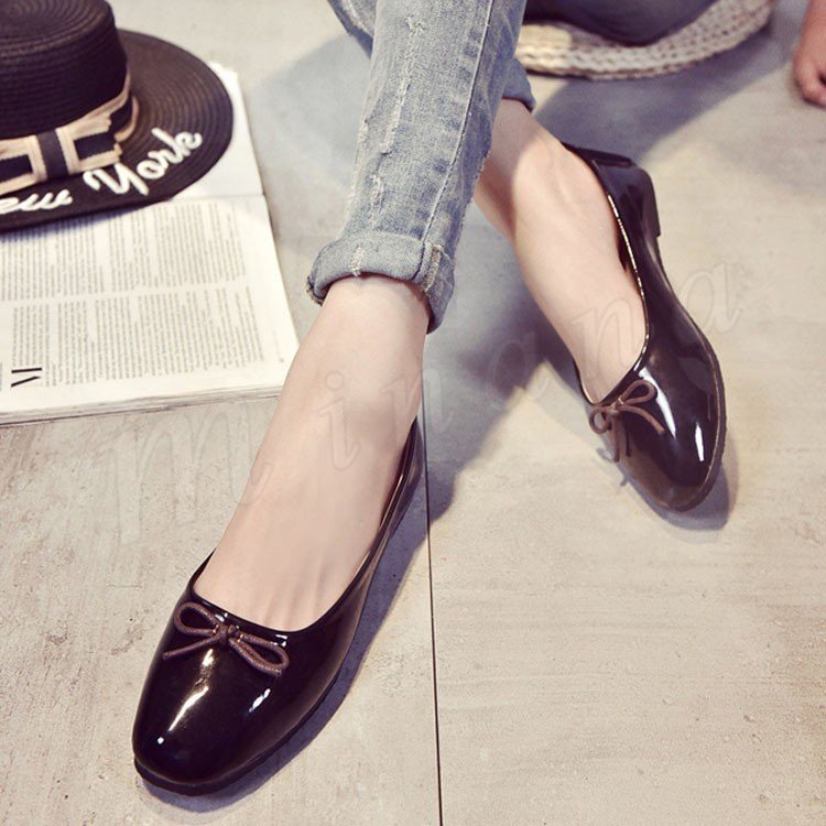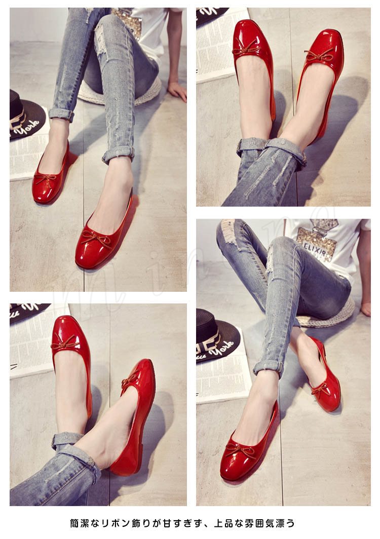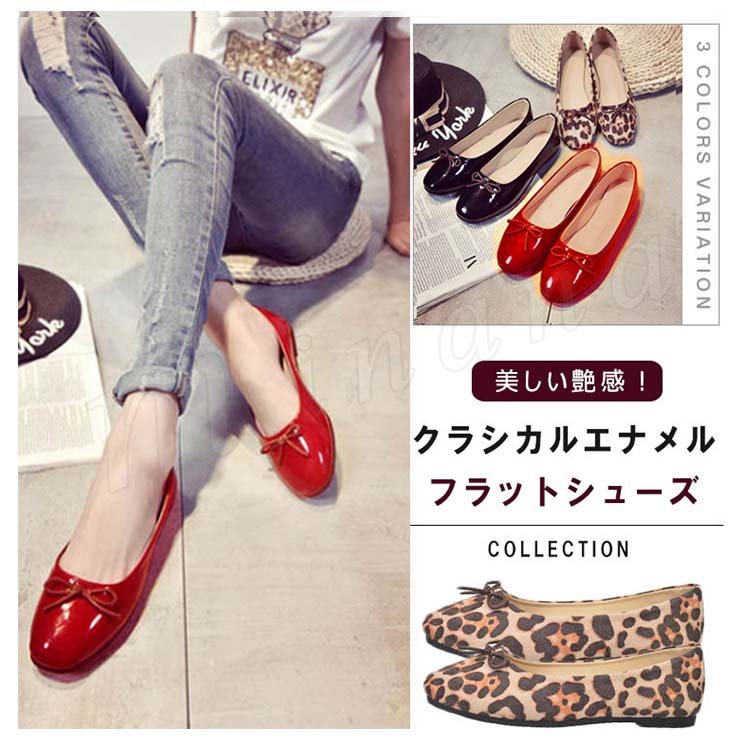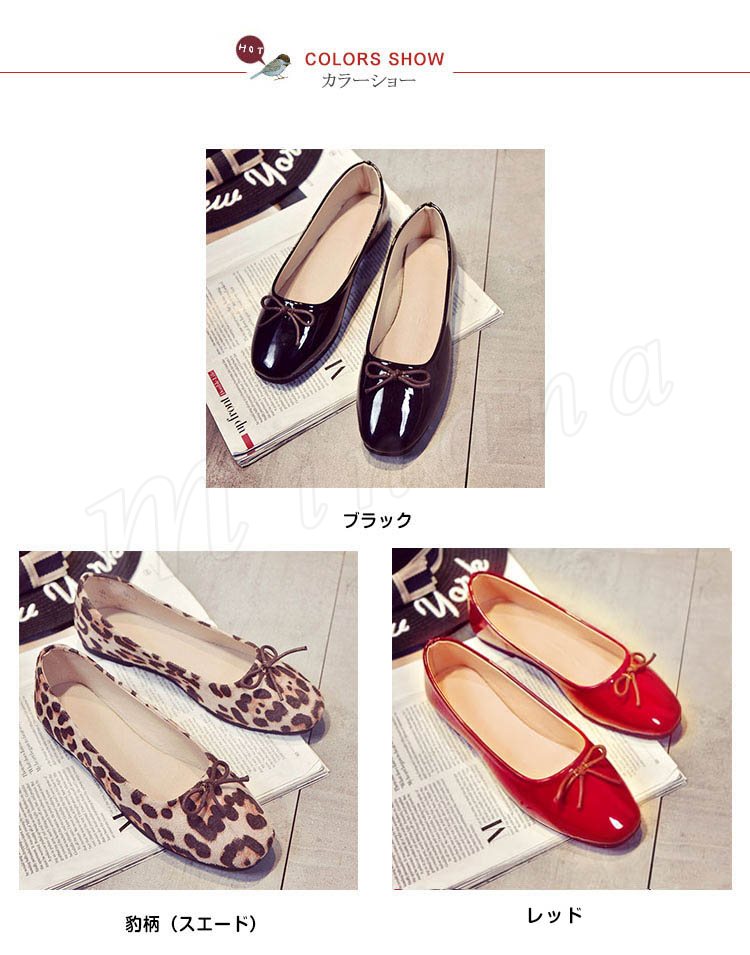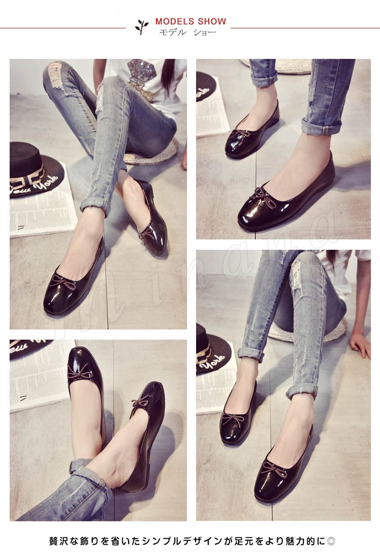 フラットパンプス リボンパンプス ラウンドトゥパンプス バレエシューズ エナメル フラット スリッポン レザーパンプス リボン ラウンドトゥ シューズ