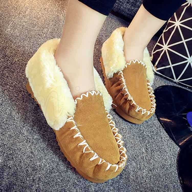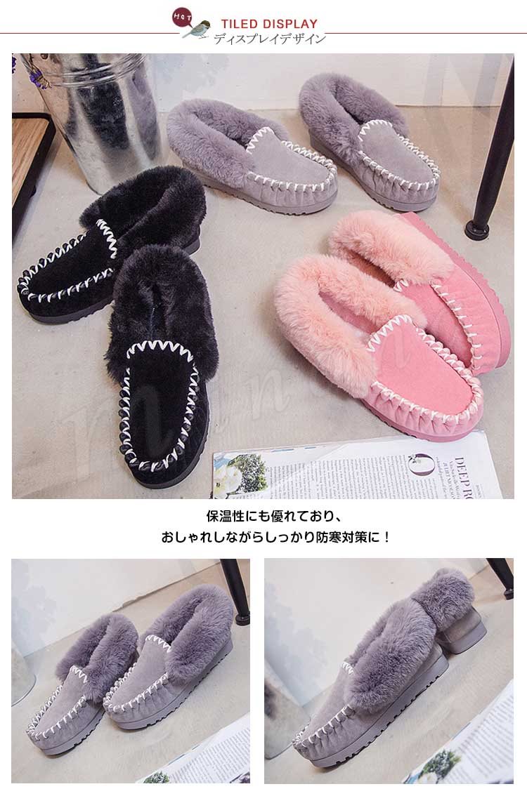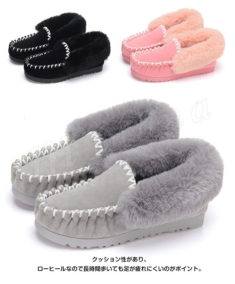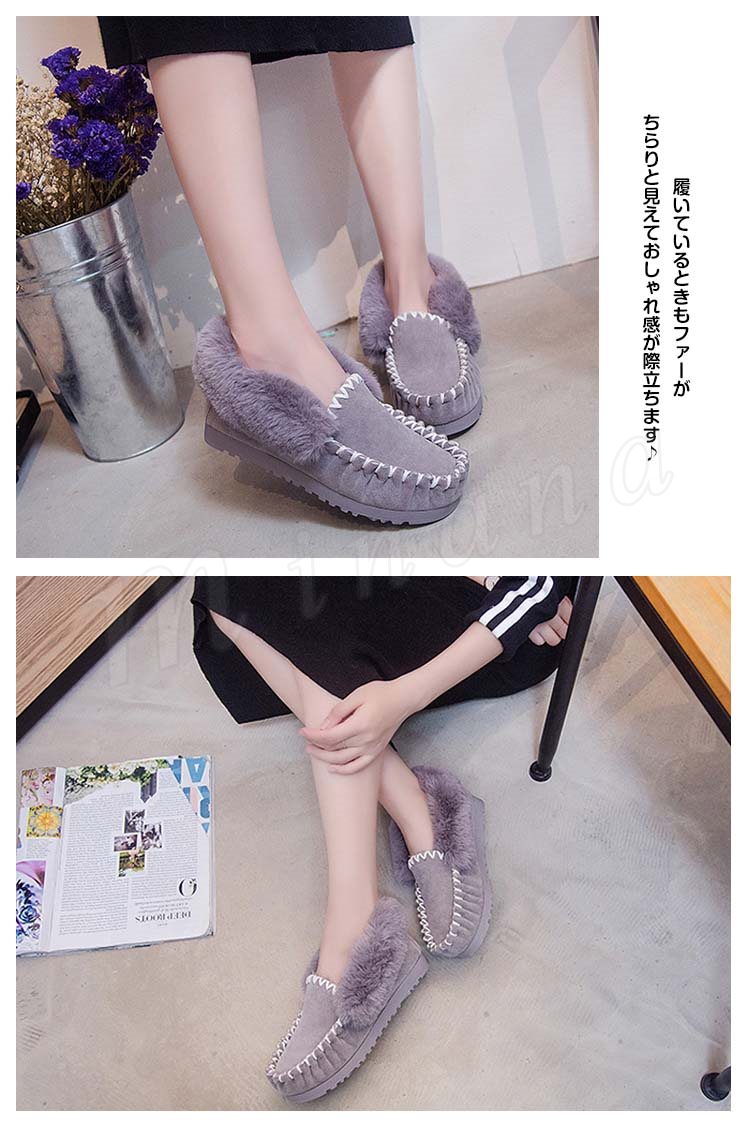 あったかもこもこ内側フェイクファー張り!ファーシューズ スリッポン モカシンシューズ ファーフラットシューズ フラット ファー ぺたんこ パンプス モ