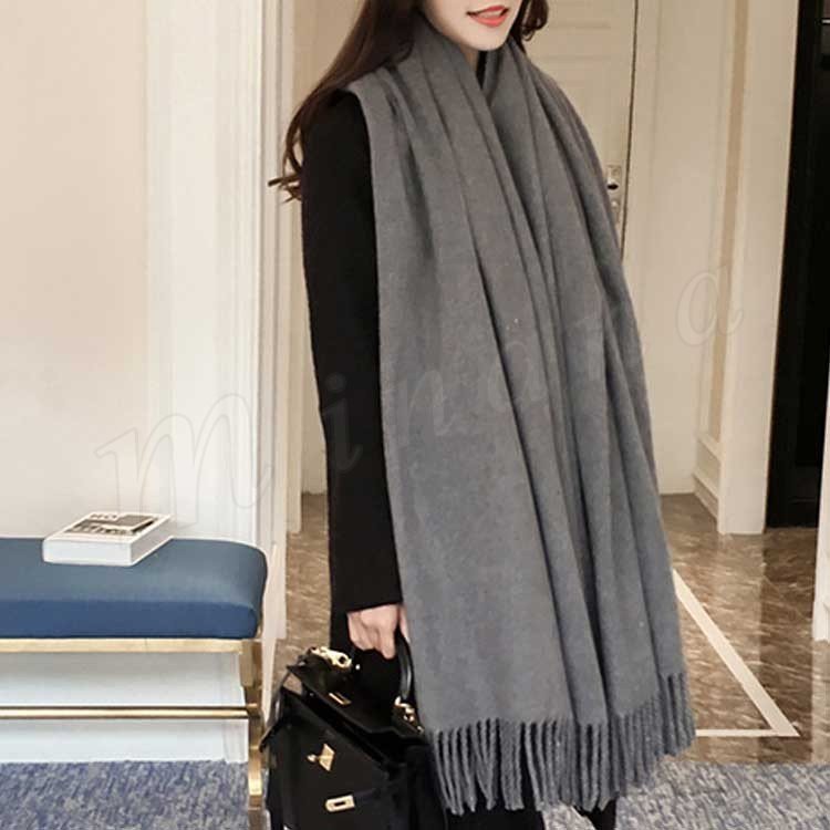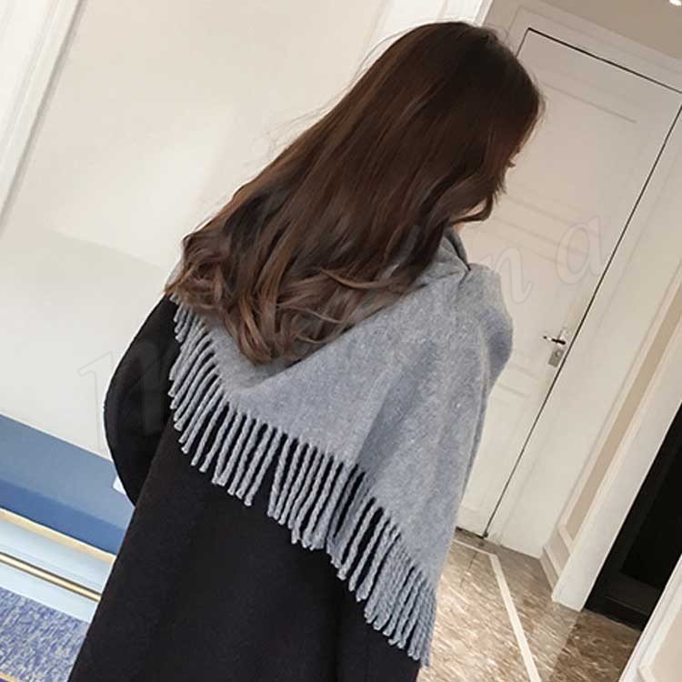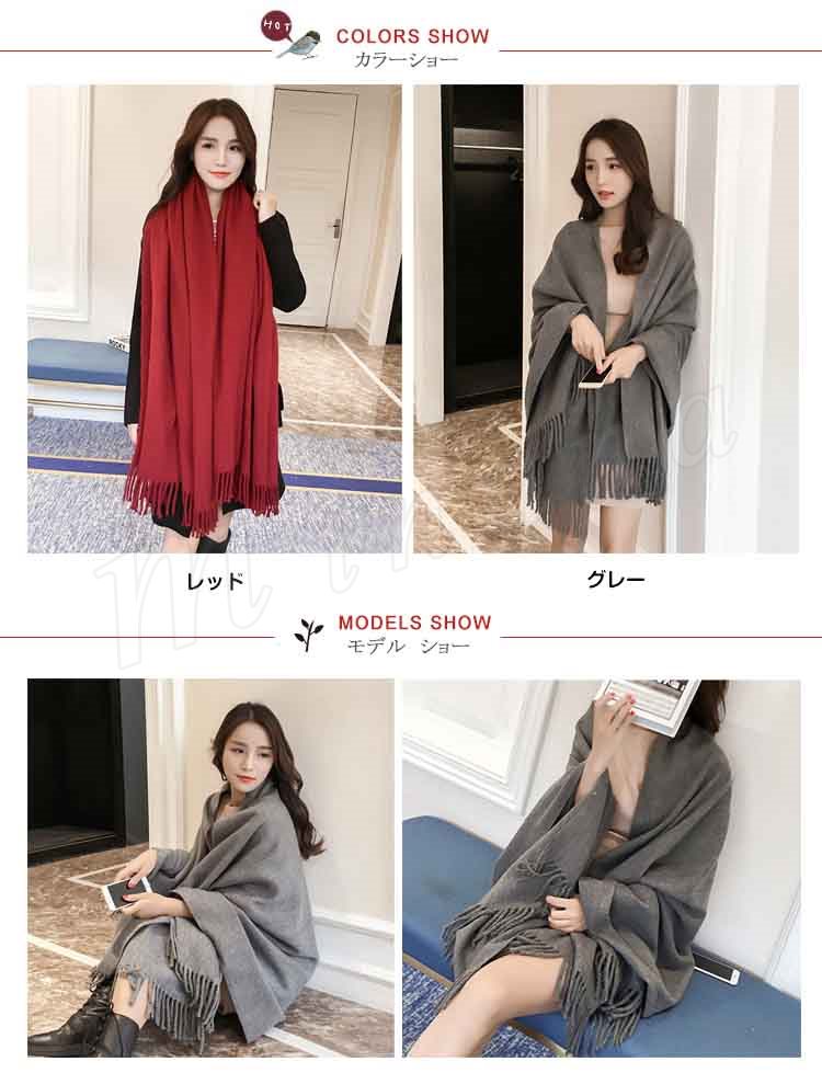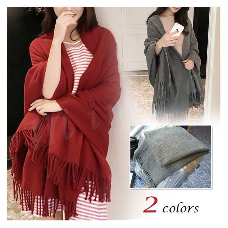 フリンジ 大判ストール 大判マフラー ひざ掛け ウールタッチ 秋冬 厚手 あったか レディース