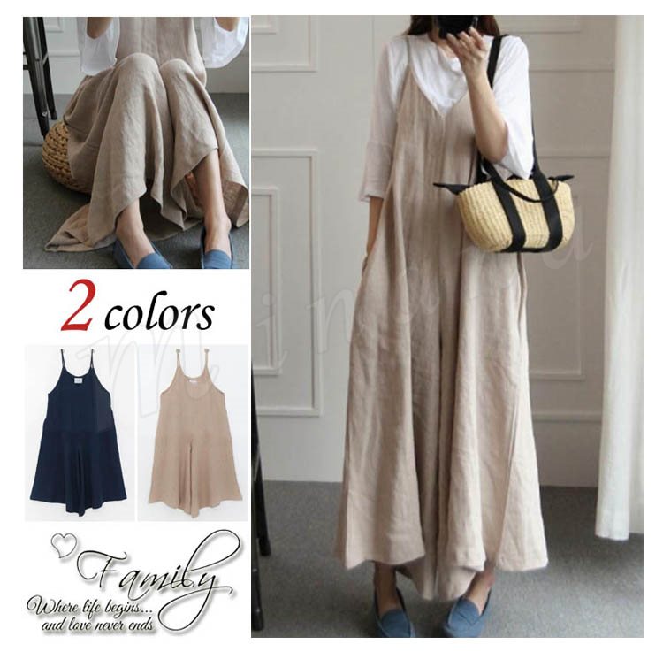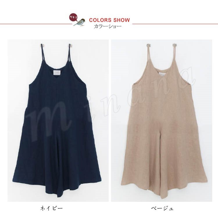レディース オールインワン キュロット 九分丈 ワイドパンツ キャミソール サロペット ガウチョパンツ ゆったり ロング丈 カジュアル 2カラー フリ
