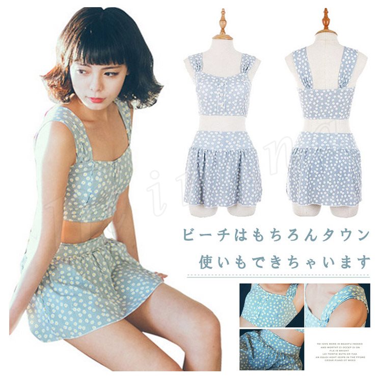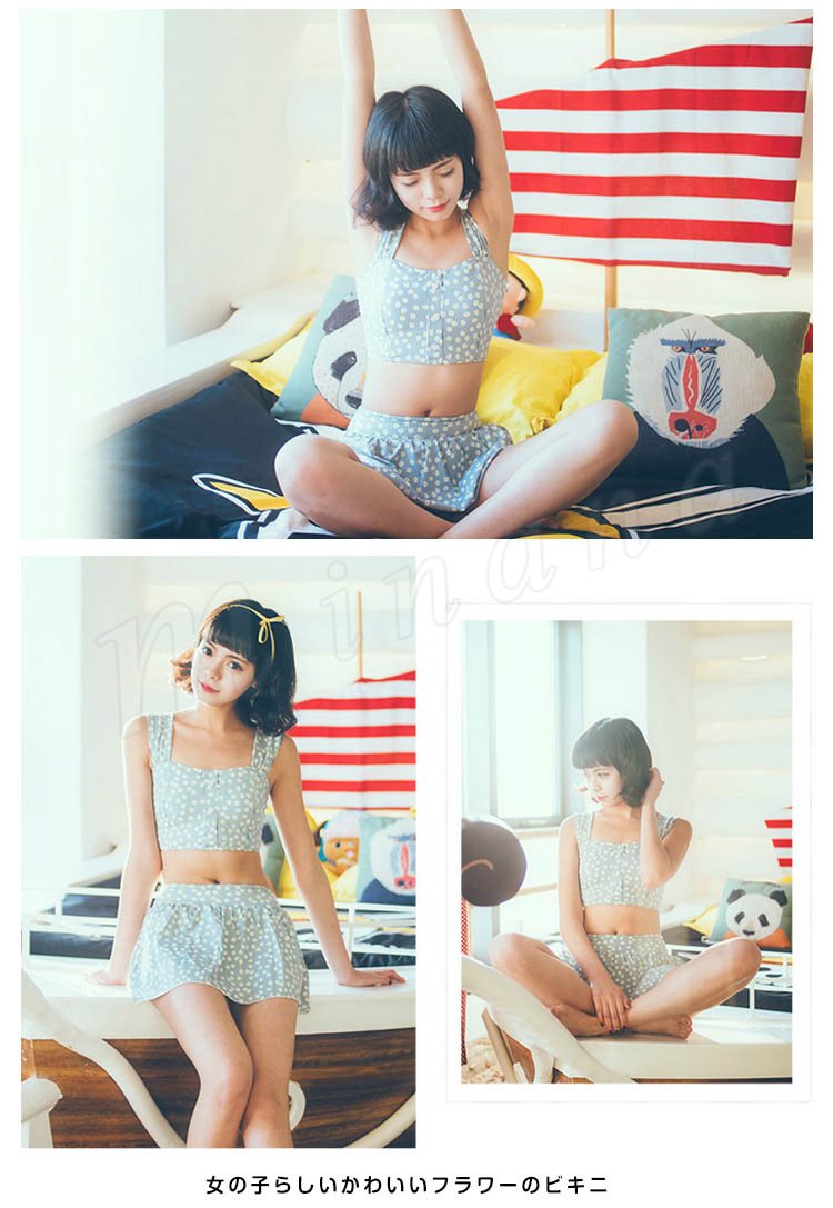 | ビーチはもちろんタウン使いもできちゃいます これで夏を満喫できること間違いなしですね 女の子らしいかわいいフラワーのビキニ 上下セットにお揃いのスイムウェアが嬉しい | |