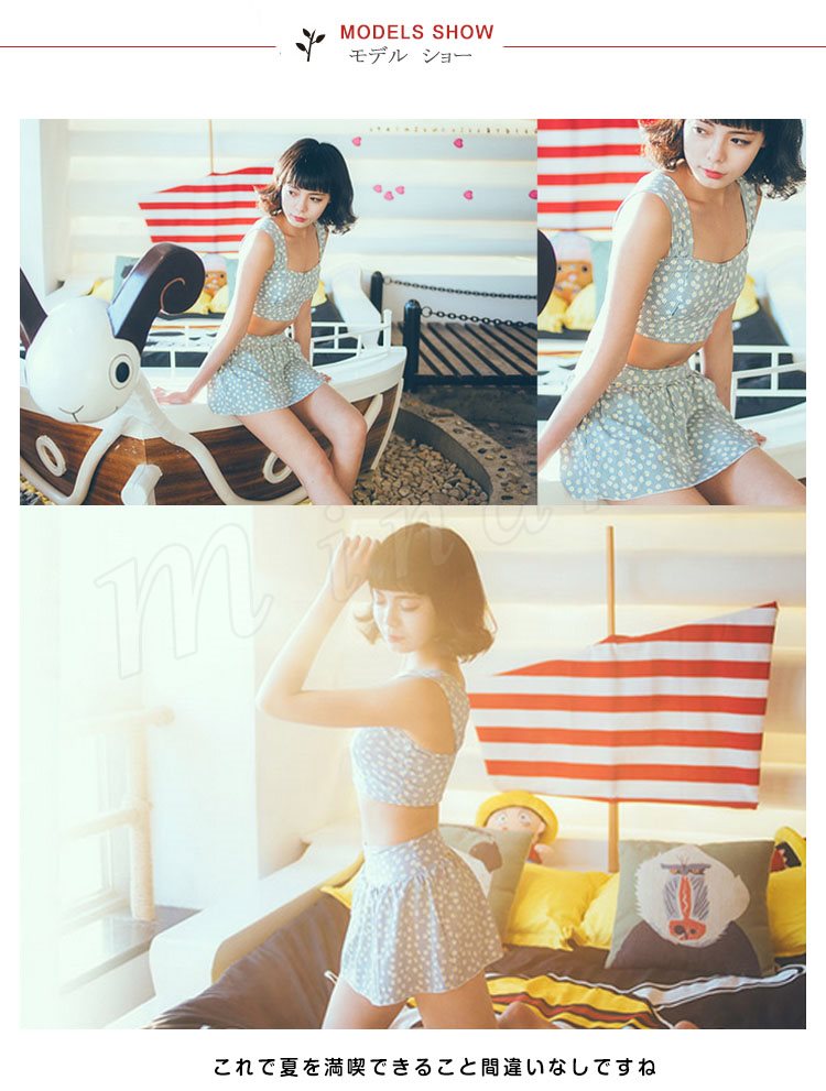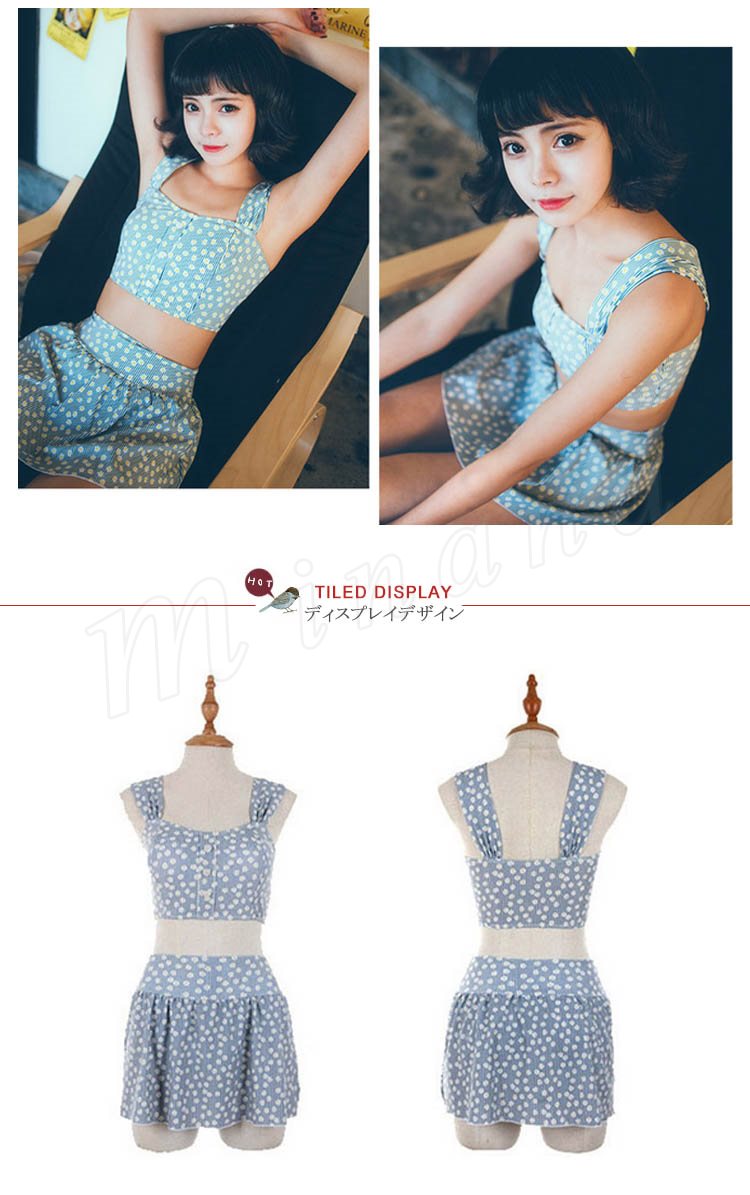 水着 レディース タンキニ ビキニ 2点セット トップス+スカパンの2点セット 花柄 大きいサイズ ノンワイヤー パッド付き 可愛い 乙女