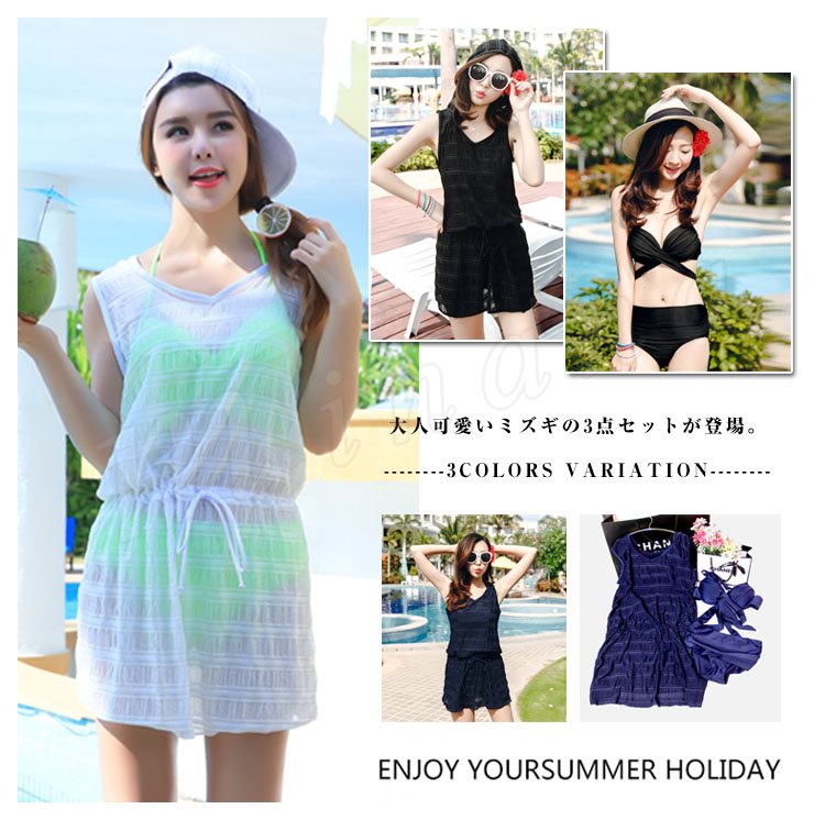 ワイヤーで美胸をMAKE!ワンピース水着 レディース ビーチウェア 水着 体型カバー ワンピース ビキニー セット 水着3点セット みずぎ ミ