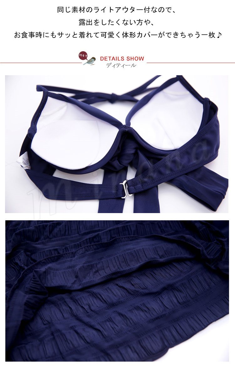 同じ素材のライトアウター付なので、露出をしたくない方や、お食事時にもサッと着れて可愛く体形カバーができちゃう一枚♪