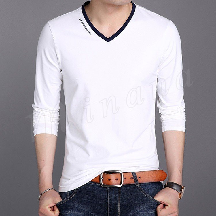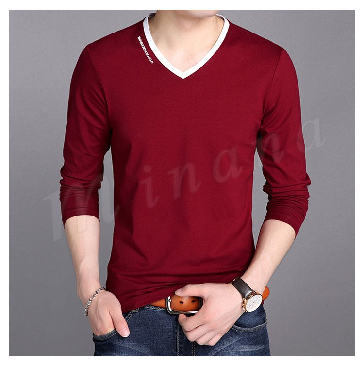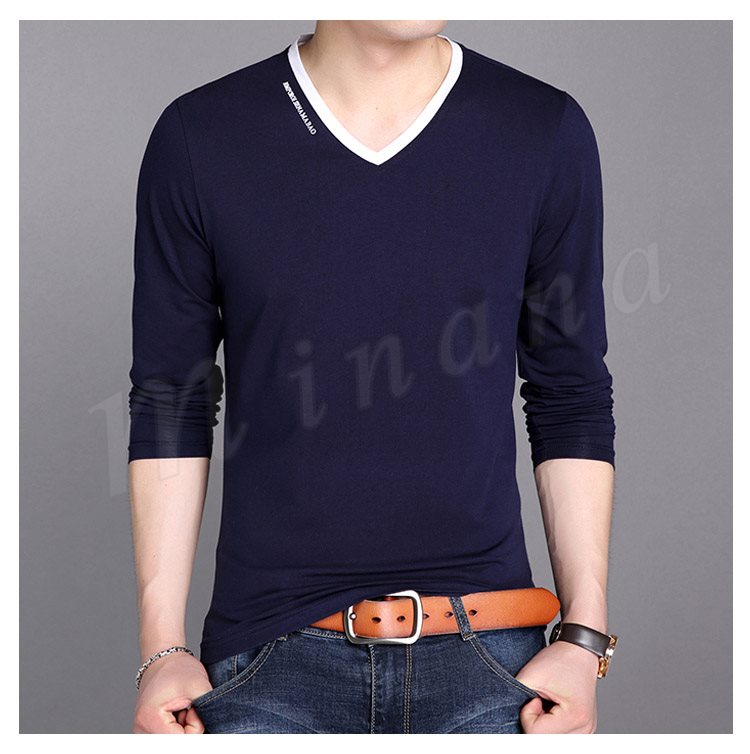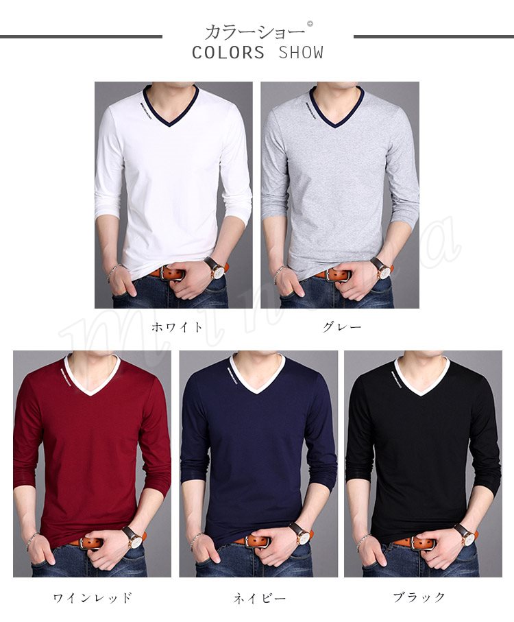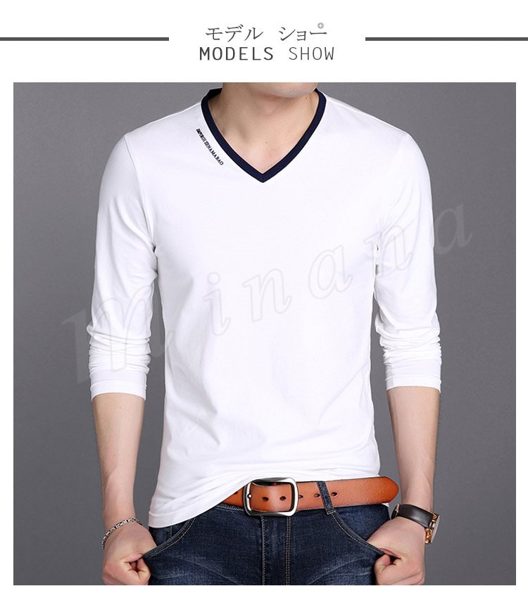 Tシャツ メンズ 長袖 ロゴT カットソー Tシャツ メンズ 大きいいサイズ Vネック インナー メンズ ストレッチ ゆったり 2018新作登場